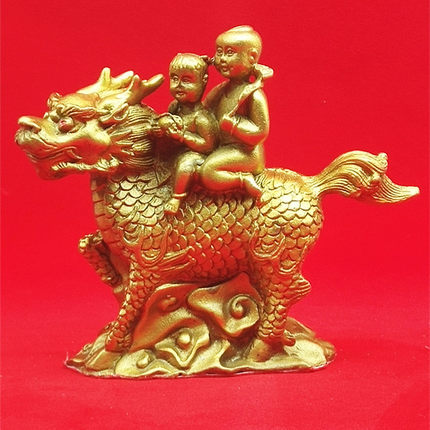 铜麒麟送子摆件观音求子龙凤招财镇宅金童玉女风水客厅桌面礼品