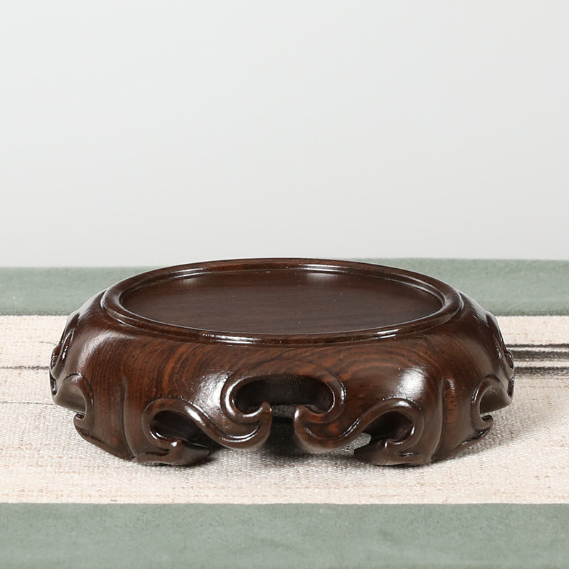 红木圆形底座整木雕刻盆景茶壶奇石摆件玉石古玩佛像实木香炉底座
