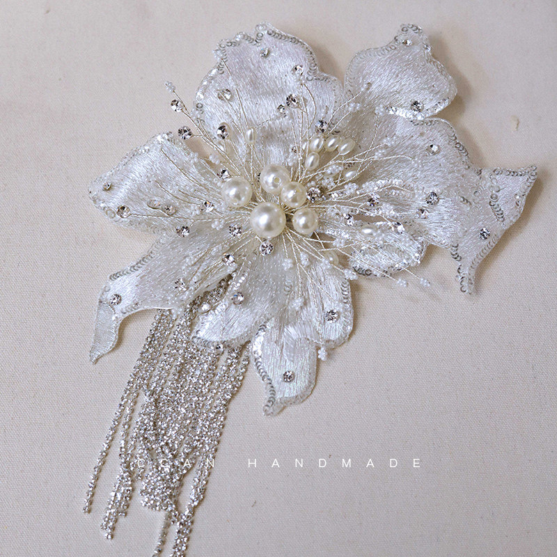 喜看新款精致水钻流苏叶子发夹新娘结婚婚纱礼服写真跟妆造型配饰