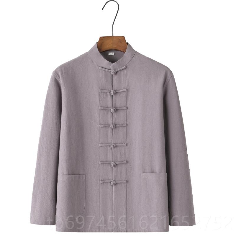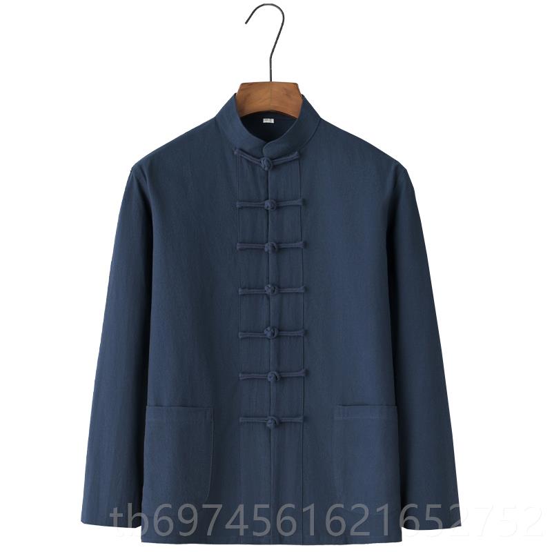 新款秋棉极麻复古国风唐装士男女新中式居春汉服禅修练功太服中山