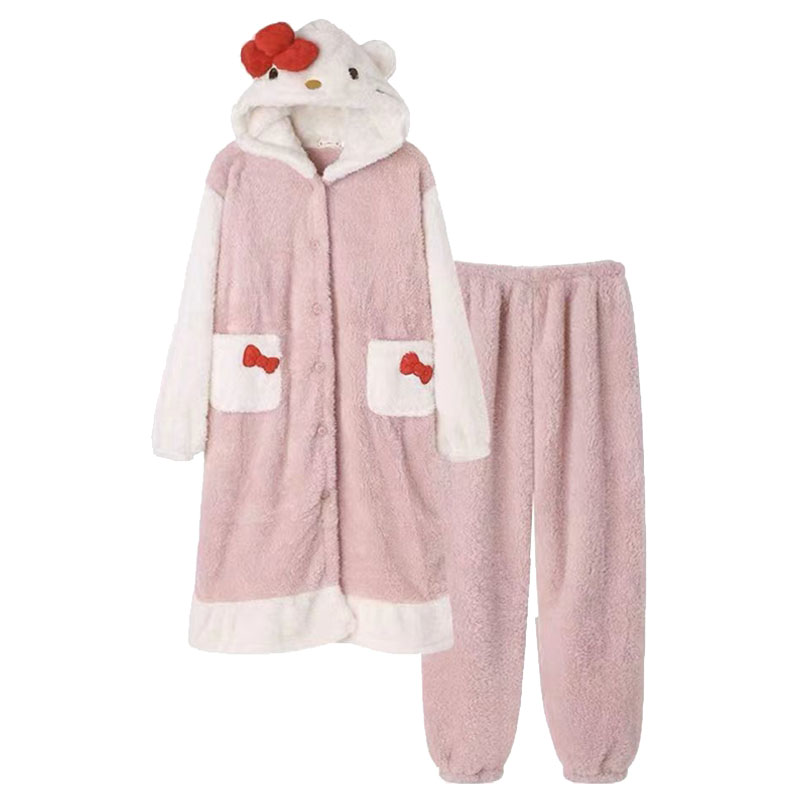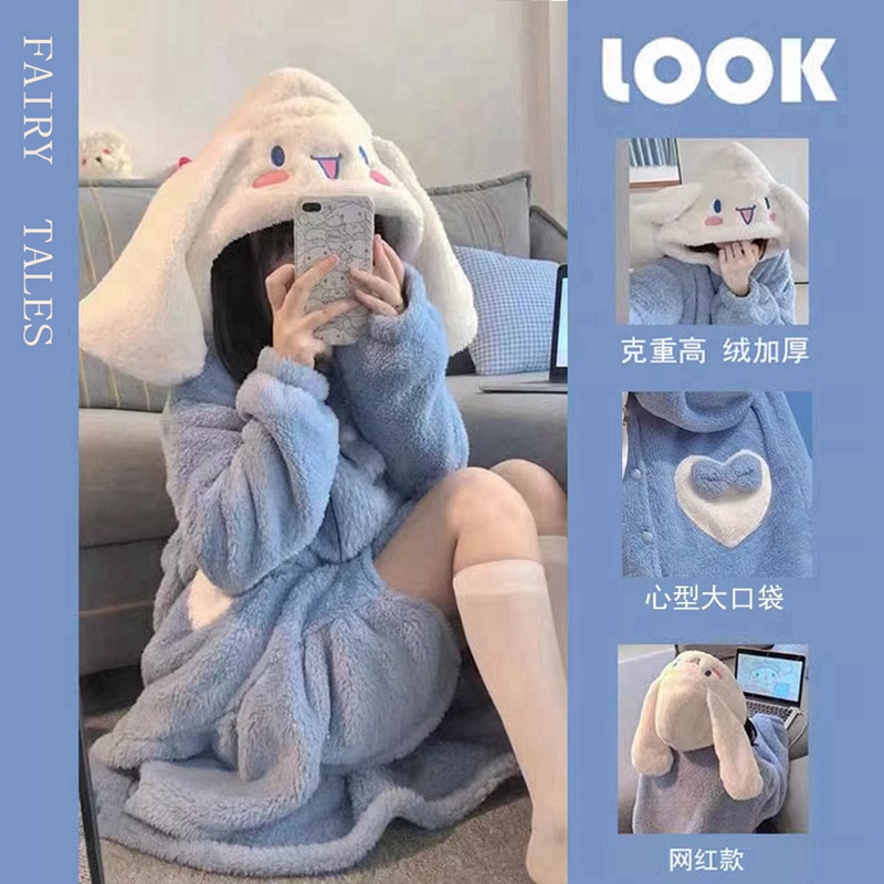 珊瑚绒睡衣女款2025新款秋冬季加绒加厚长超火猫咪睡袍睡裙家居服
