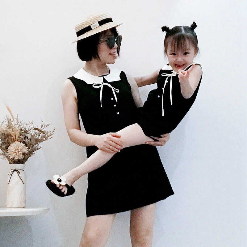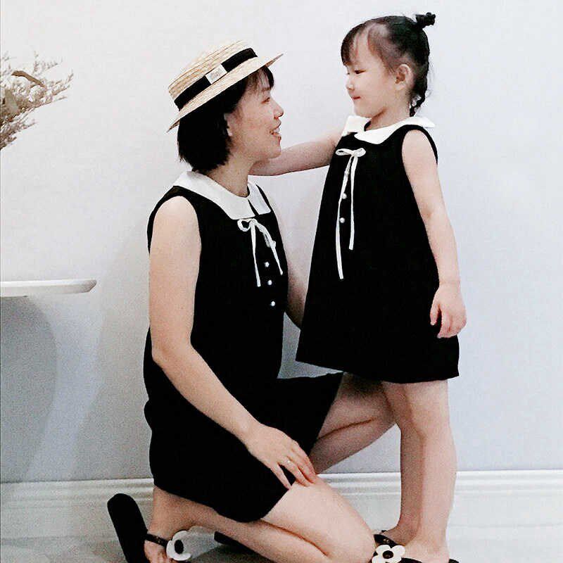 夏季亲子款母女装经典法式黑色连衣裙女童背心裙S宝宝周岁礼服洋