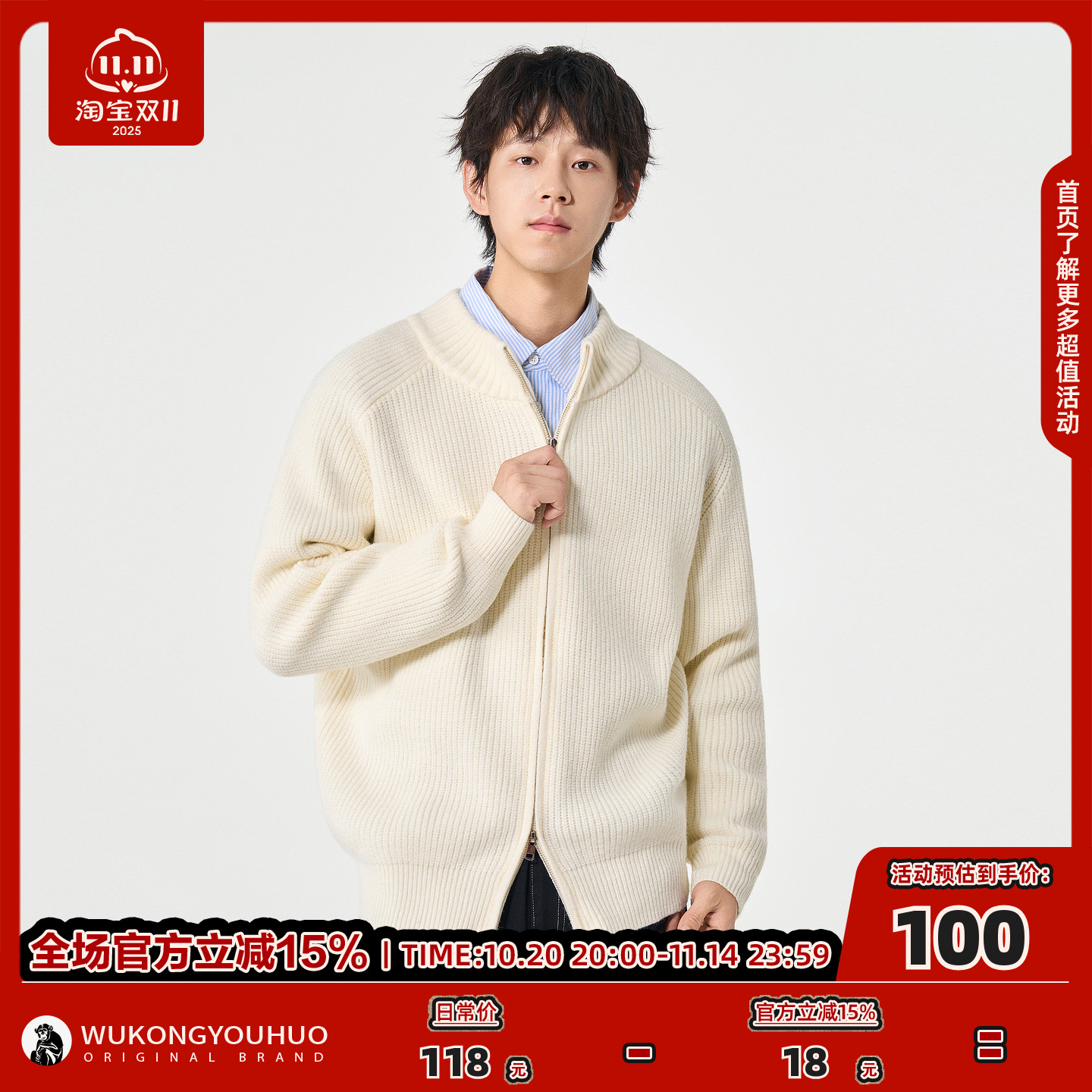 悟空有货复古潮牌纯色开衫针织衫毛衣男秋季宽松情侣百搭慵懒外套