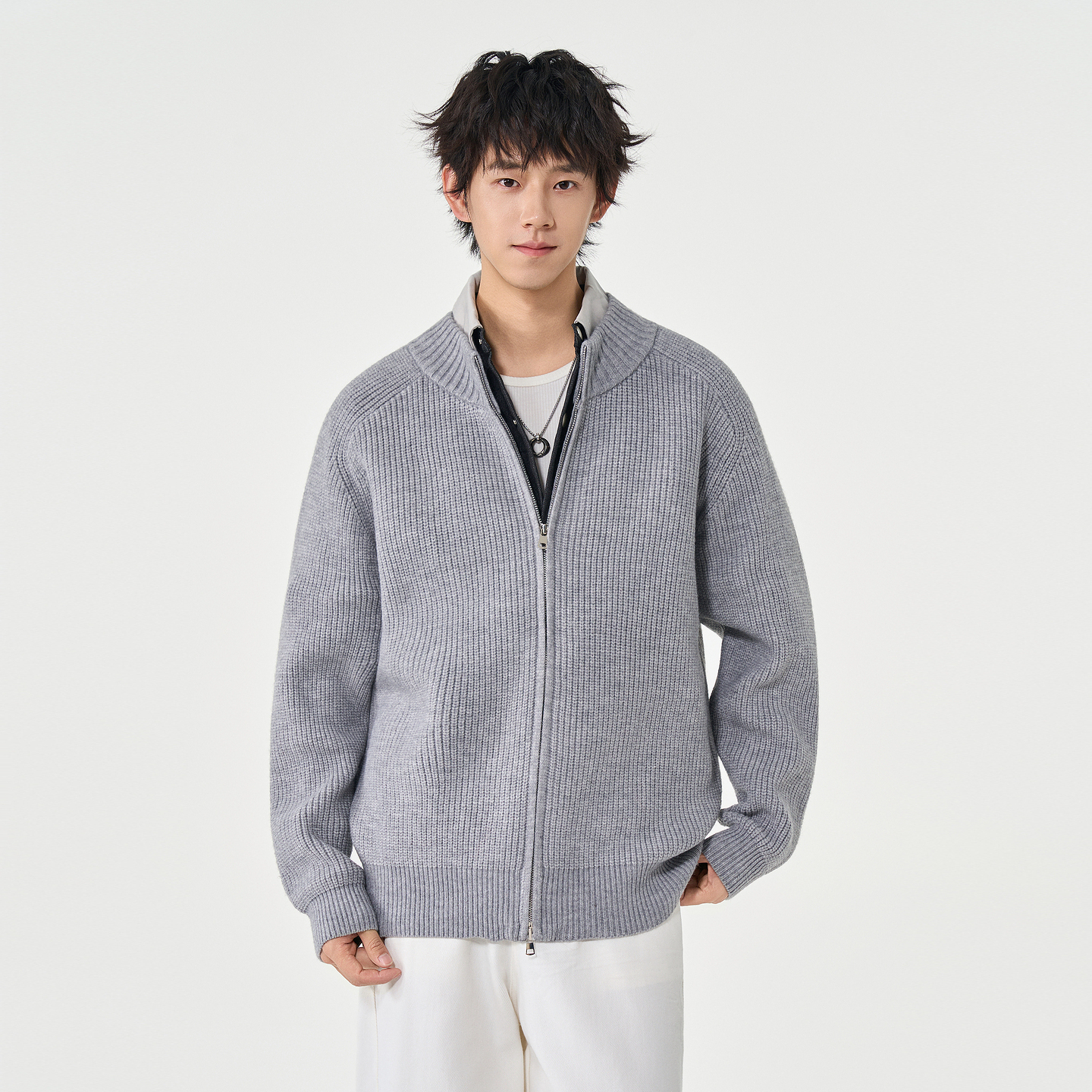 复古潮牌纯色开衫针织衫毛衣男