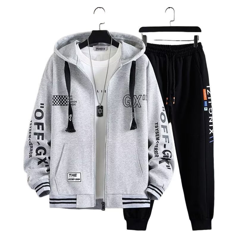 外套男秋冬季新款帅气开衫卫衣青少年中厚加绒连帽夹克学生棒球服
