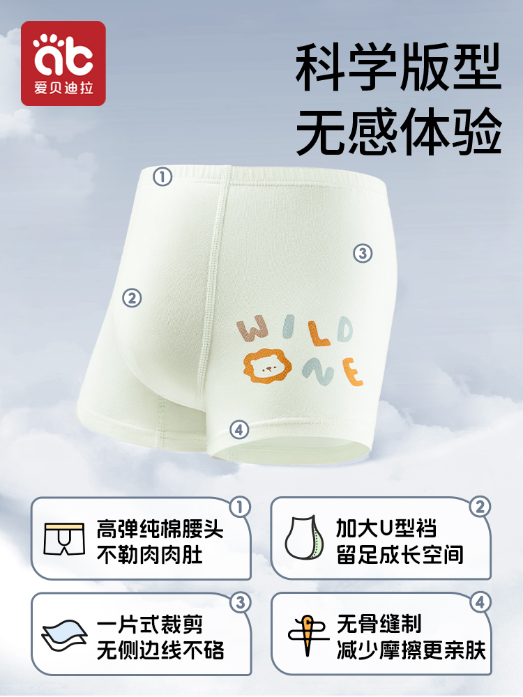 爱贝迪拉儿童纯棉四角平角内裤