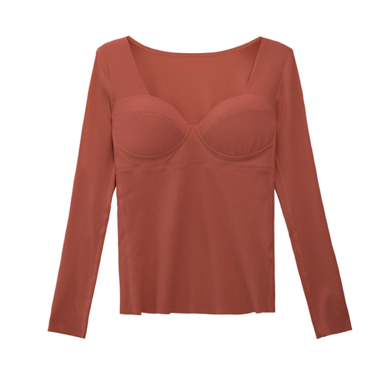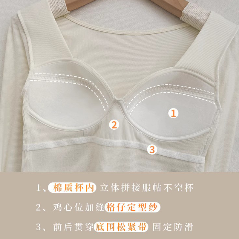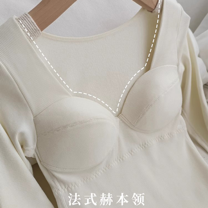 德绒无痕发热保暖内衣女士低领带胸垫冬季打底衫上衣长袖加绒秋衣