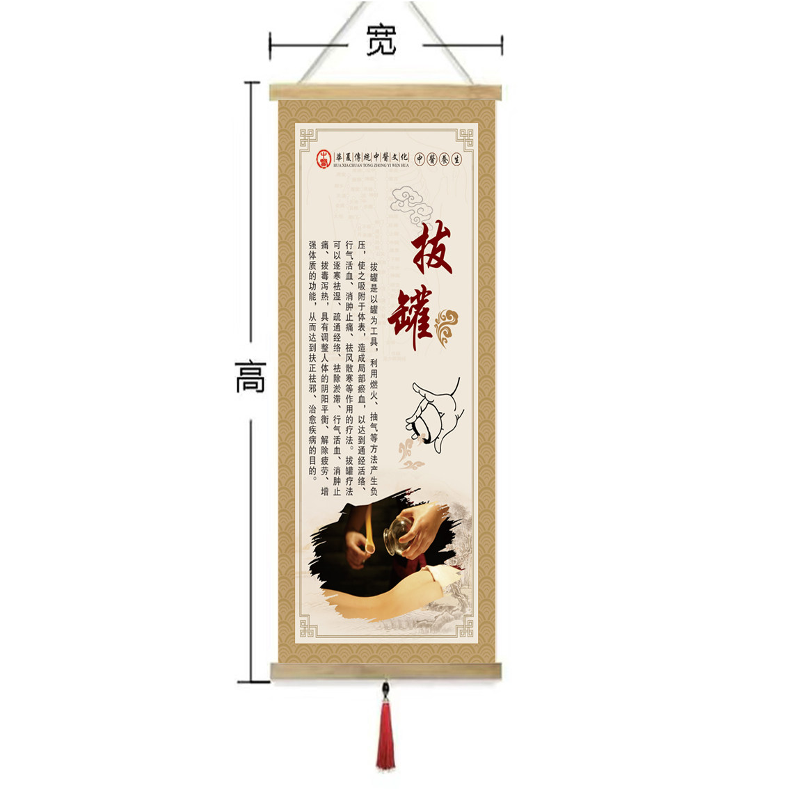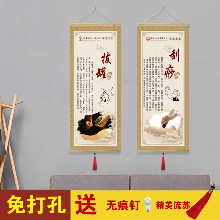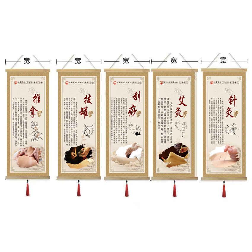 艾灸拔罐针灸推拿实木挂轴挂画卷轴画中医养生理疗头疗刮痧装饰画
