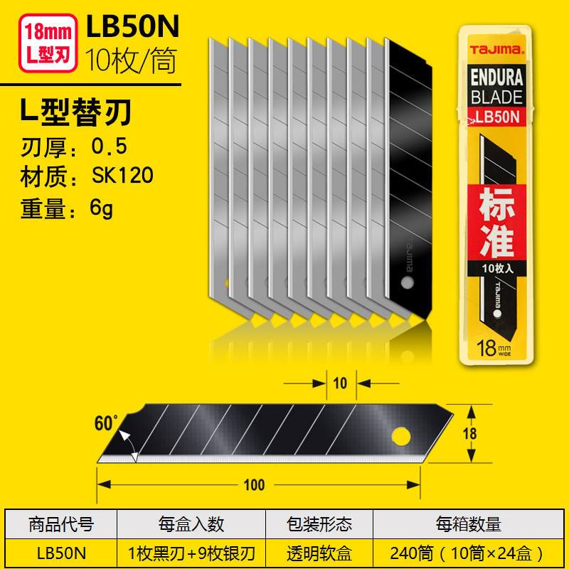日本Tajima田岛刀片工业用18mm壁纸刀片LB50H/50N美工刀刀片正品