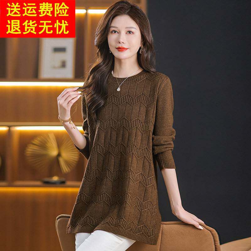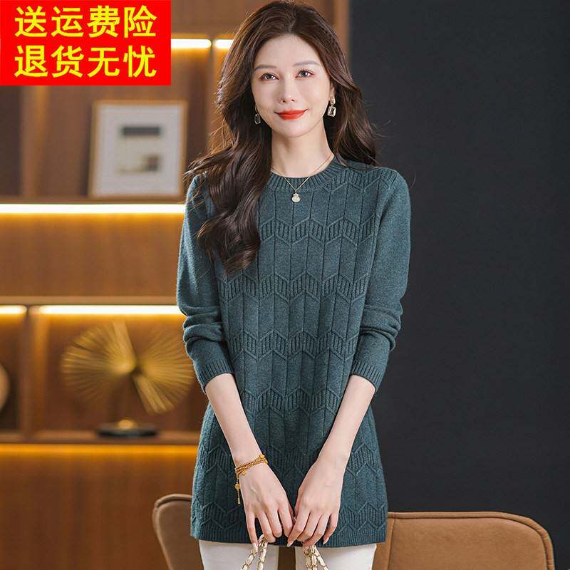 鄂尔多斯市秋冬中长款女毛衣羊绒针织衫连衣裙遮肚羊毛内搭打底衫