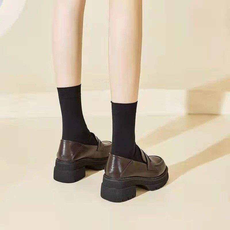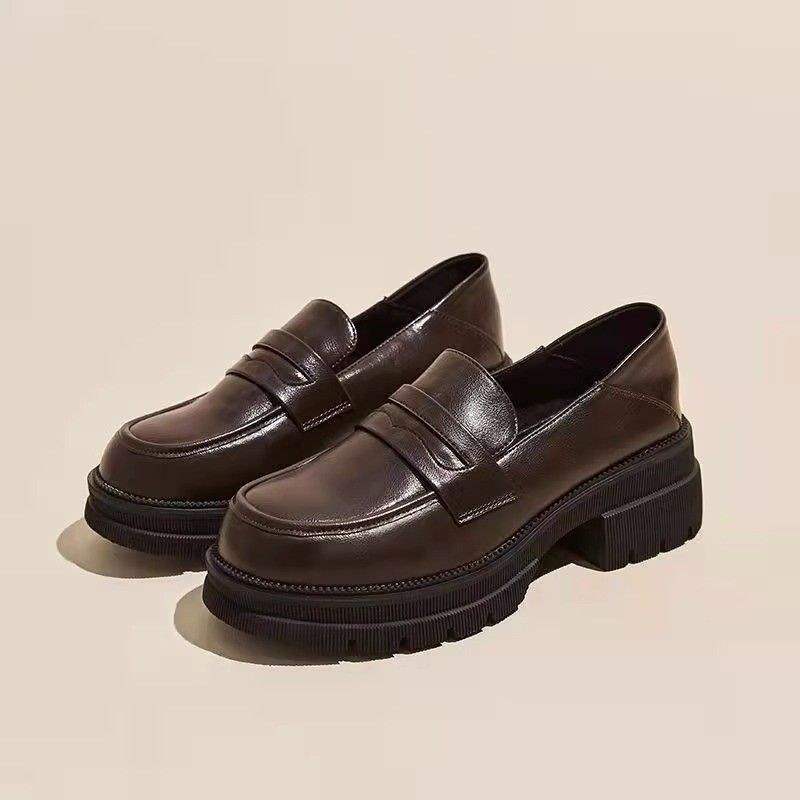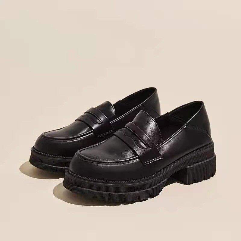 乐福鞋女2025春秋新款英伦风小皮鞋jk日系一脚蹬厚底法式高跟单鞋