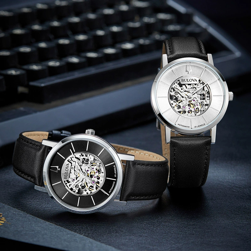 宝路华手表男表机械表时尚复古简约镂空皮带欧美表96A278/279