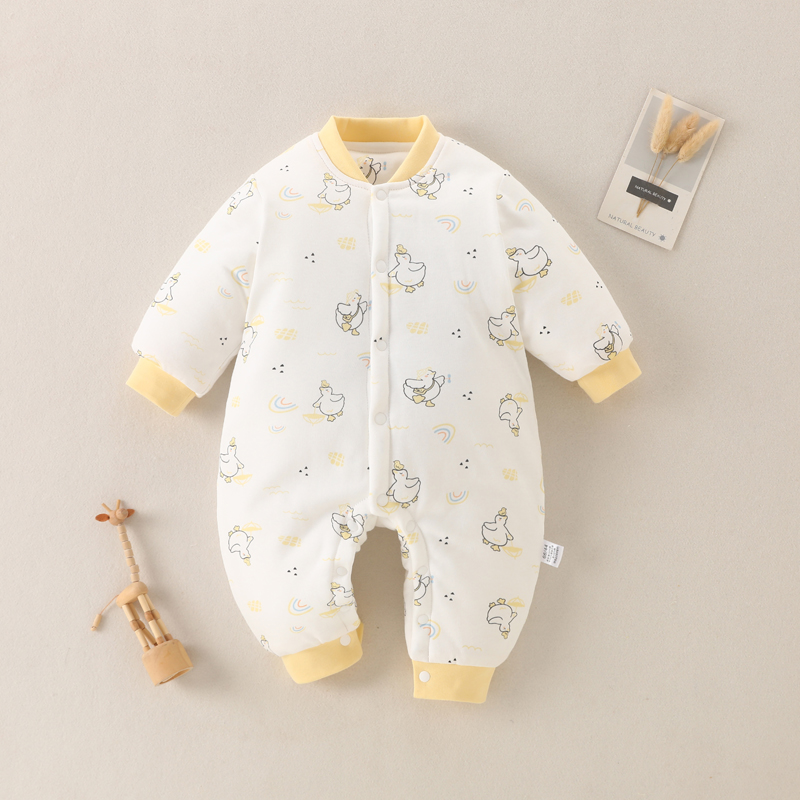 婴儿薄夹棉连体衣男女宝宝保暖纯棉哈衣新生儿外出服春秋棉衣套装