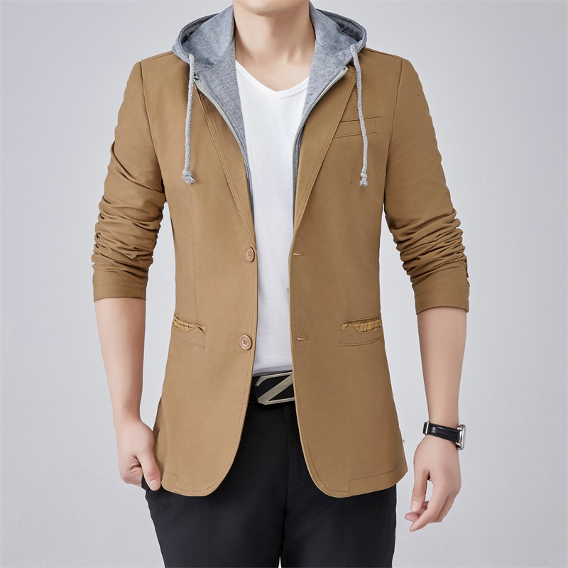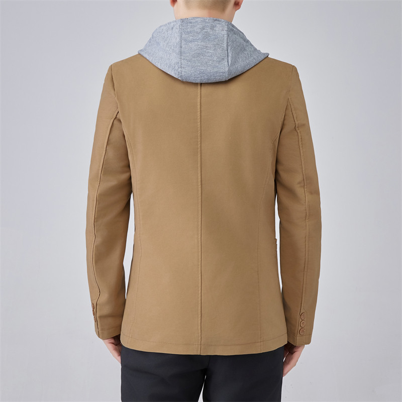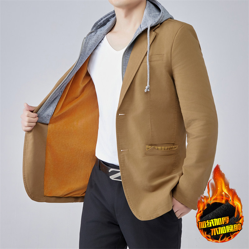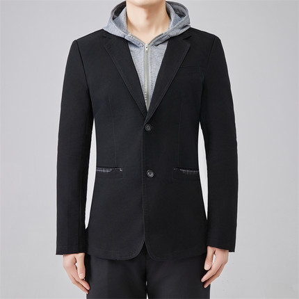 男装秋冬款可脱卸连帽修身小西装假两件肥佬大码男士大码西服加绒