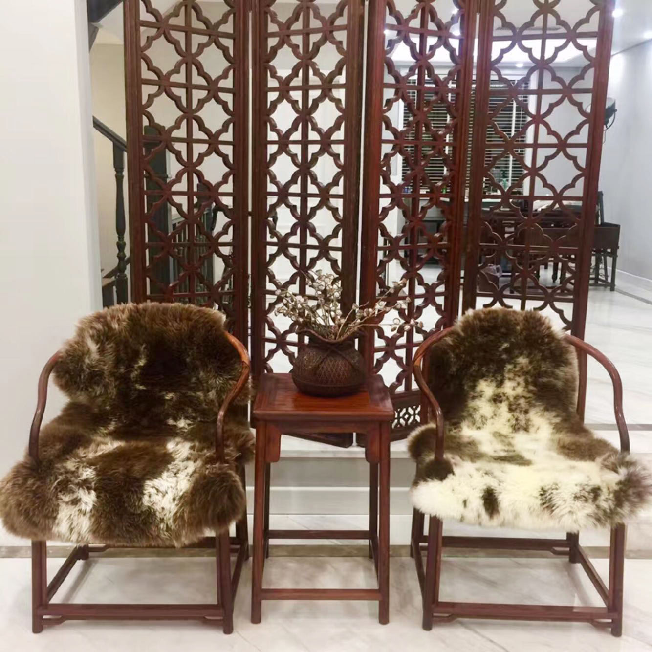 澳世家 整张羊皮坐垫 红木沙发羊毛皮草座垫圈椅太师椅实木椅子垫