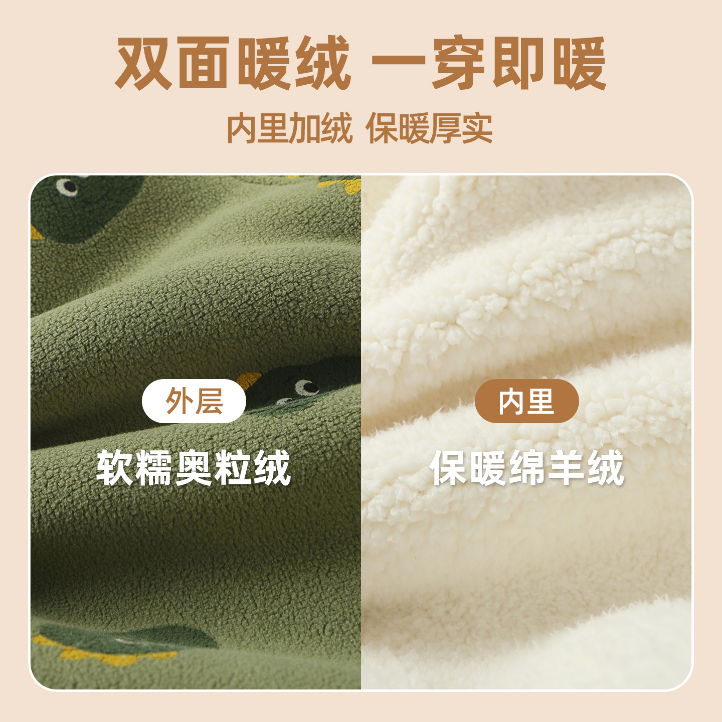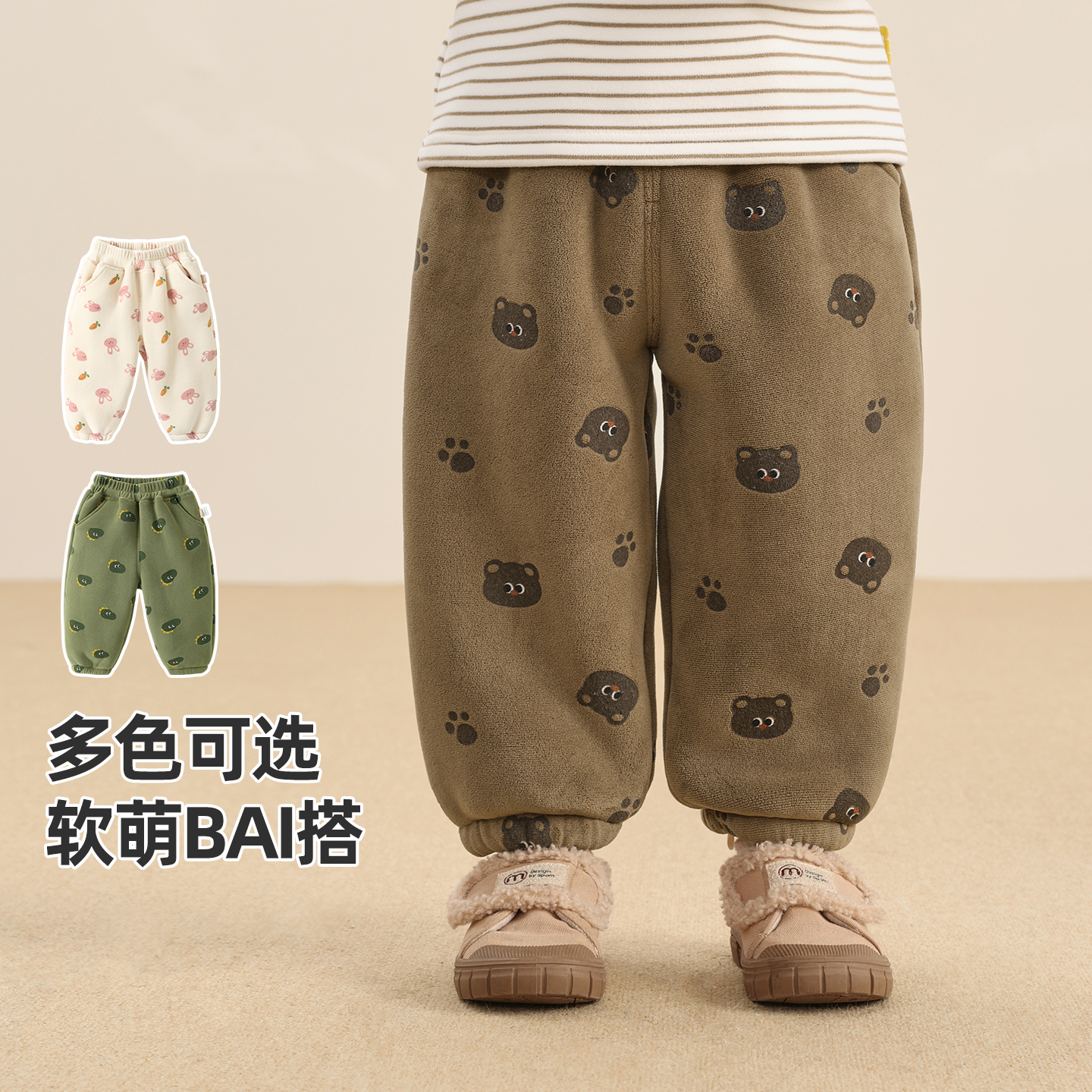 咔咔熊猫宝宝加绒保暖裤子秋冬儿童奥粒绒加厚束脚裤冬季男童长裤