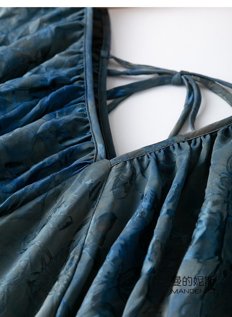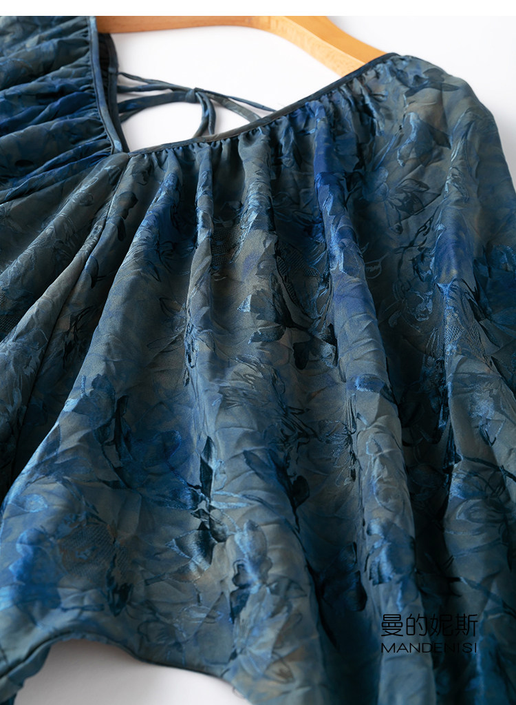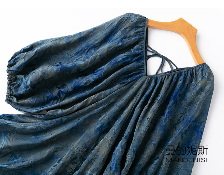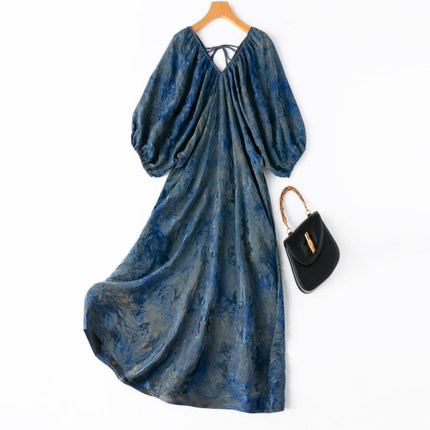 设计感!艺术草染!褶皱纹理!透气花罗香云纱真丝灯笼袖连衣裙