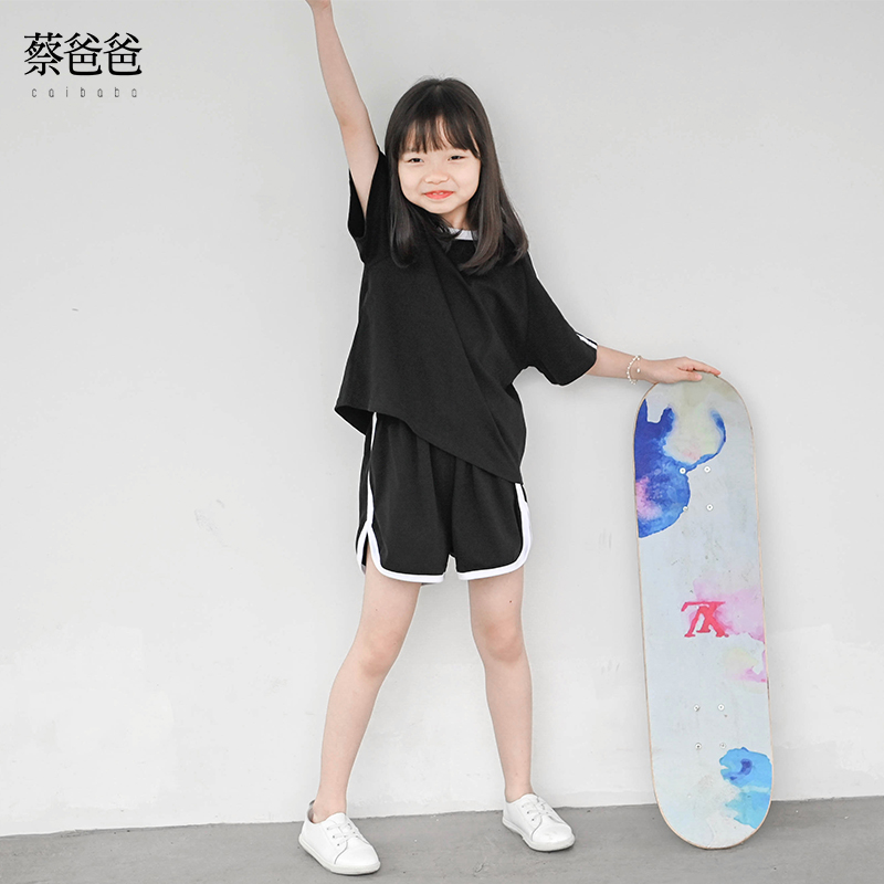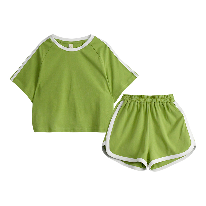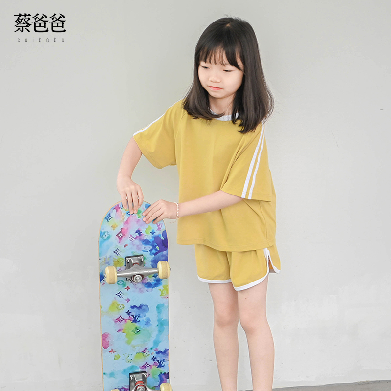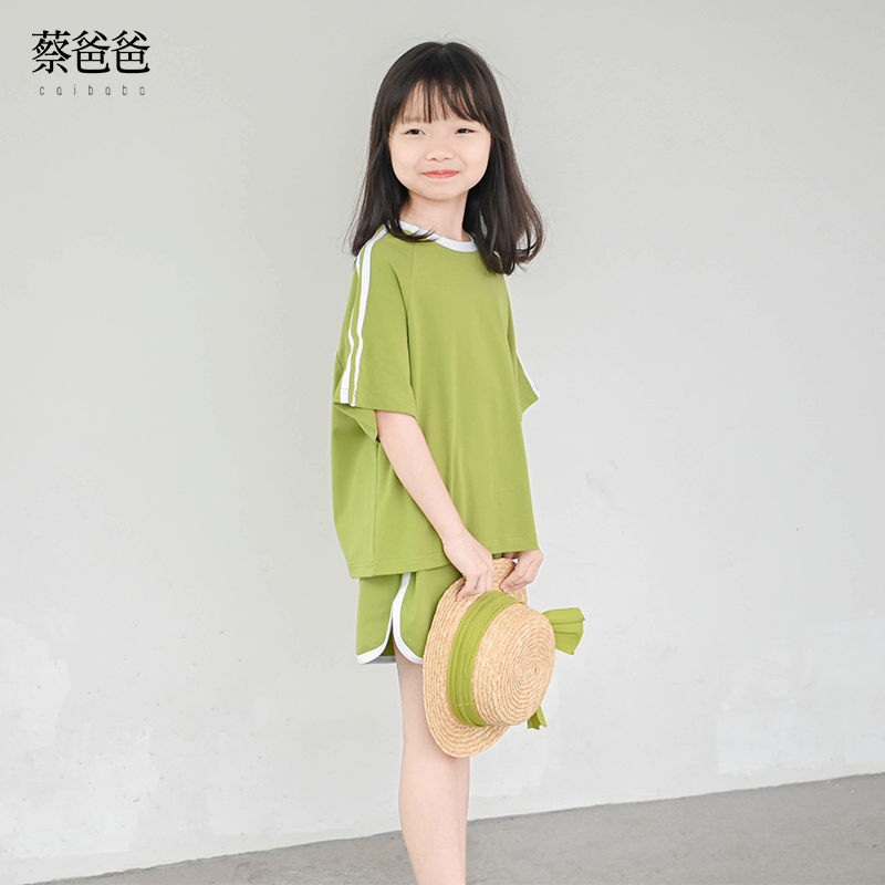 蔡爸爸童装 2025新款夏装儿童绿色短袖套装 男女童休闲2件服装726