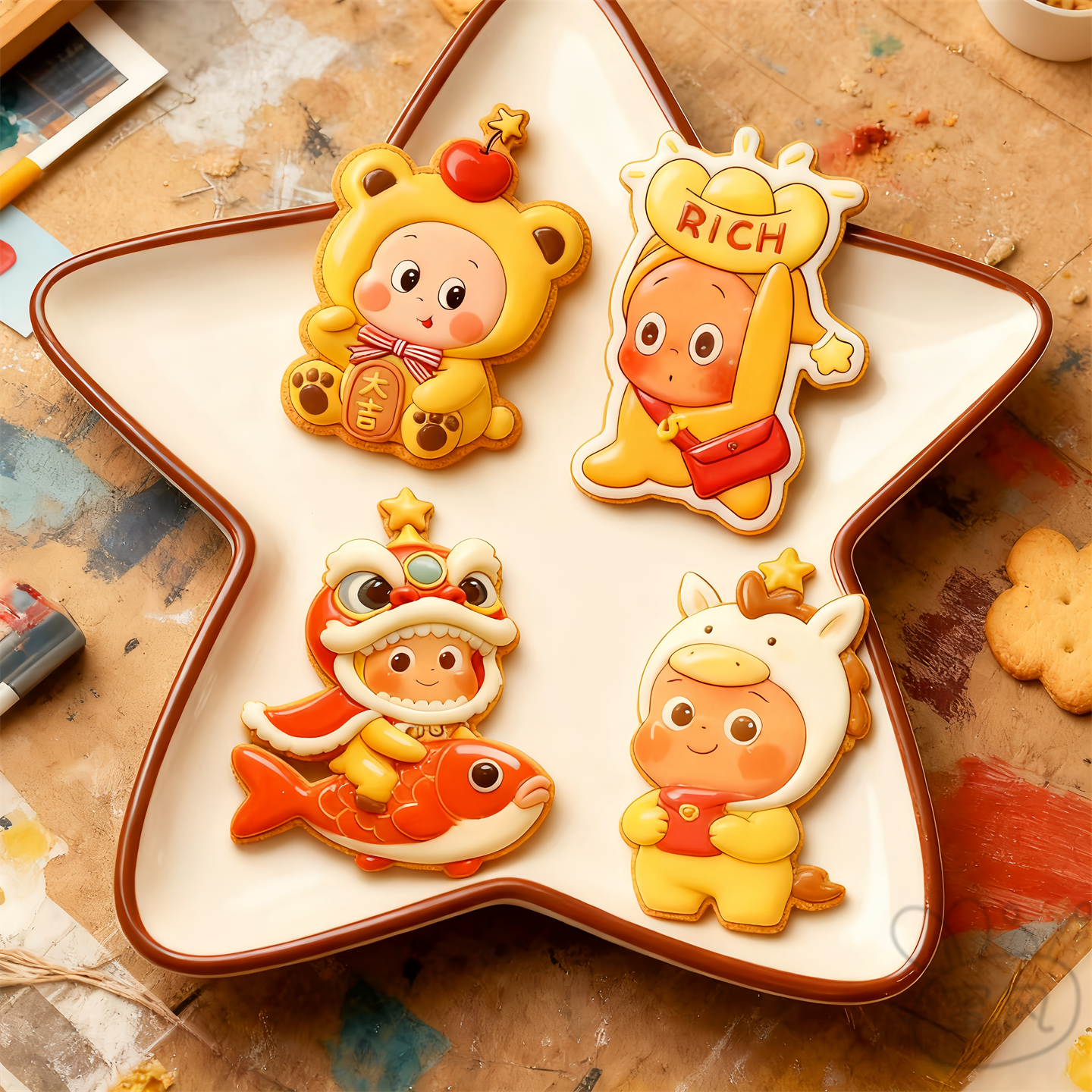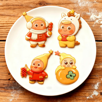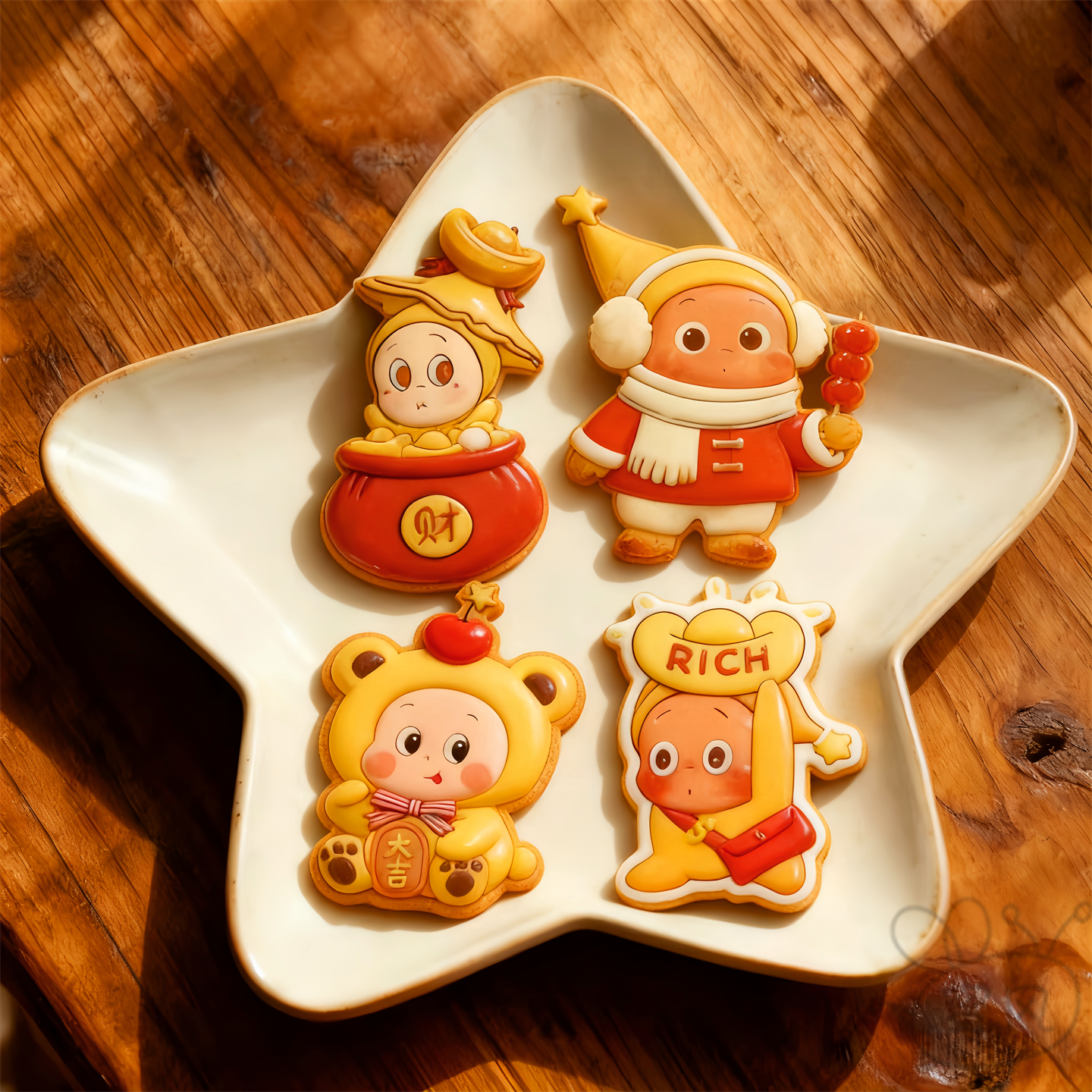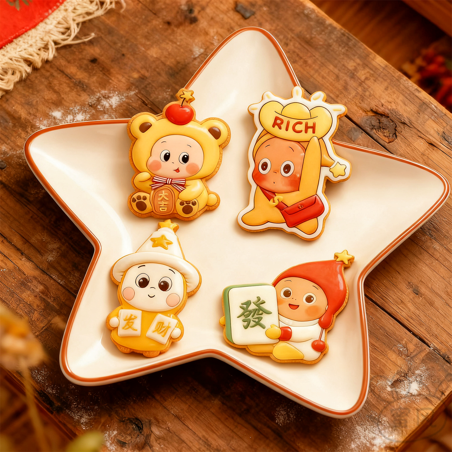 新年2026星星人卡通糖霜饼干模具福袋柿子锦鲤文字创意烘焙曲奇