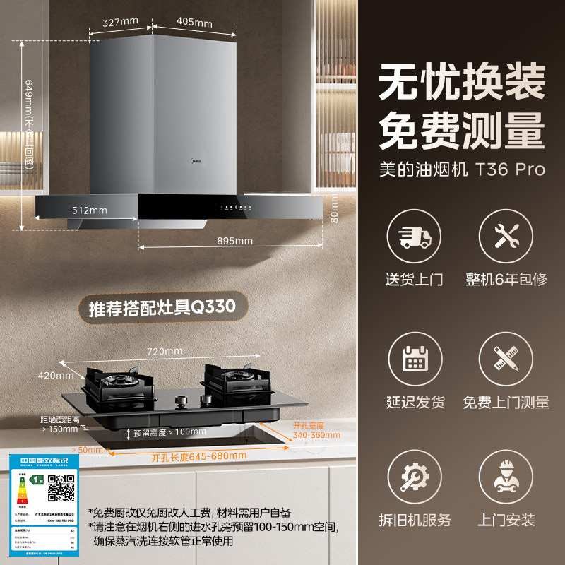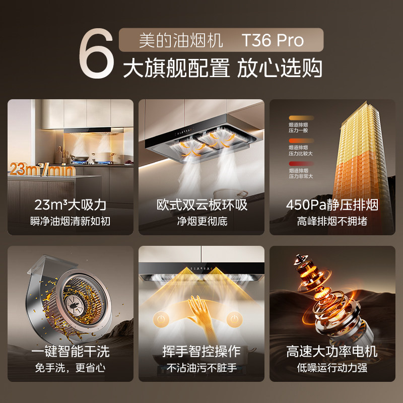 美的官方抽油烟机T36PRO家用厨房欧式顶吸自清洁吸油烟机烟灶套装