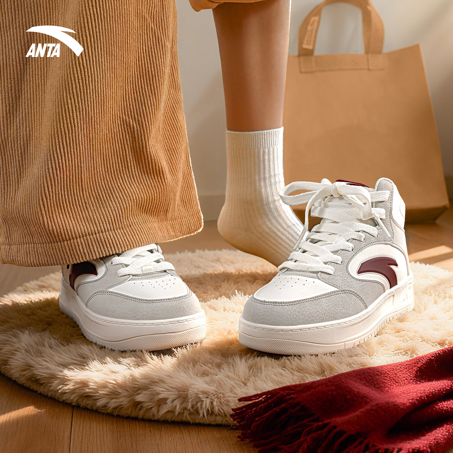 安踏高帮运动休闲板鞋女款2025新款冬季学生休闲轻质舒适小白鞋子