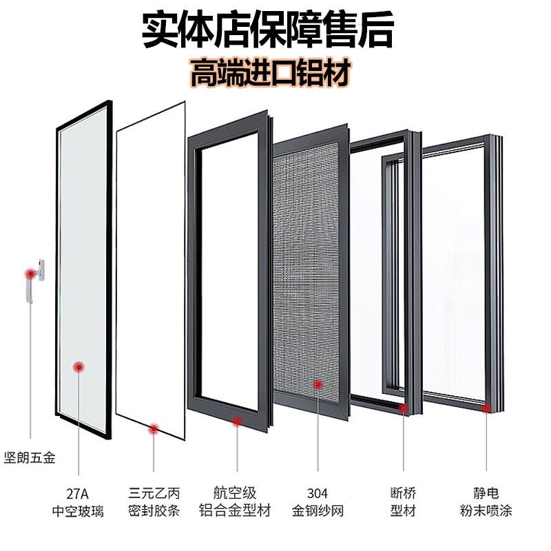 成都断桥铝合金门窗定制平开窗纱一体推拉隔音系统窗户封窗封阳台