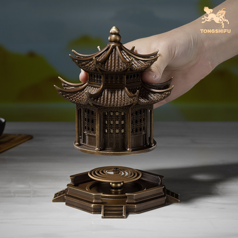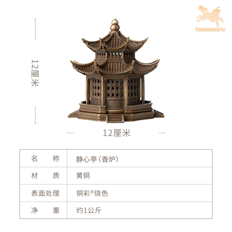 铜师傅《静心亭(香炉)》客厅桌面铜摆件 家居装饰工艺品