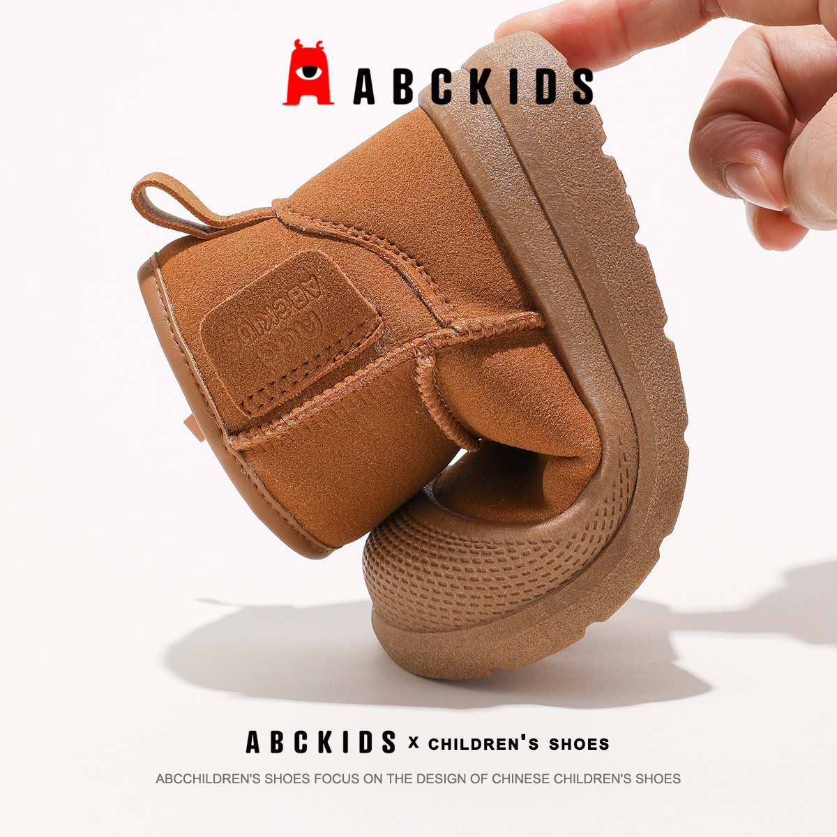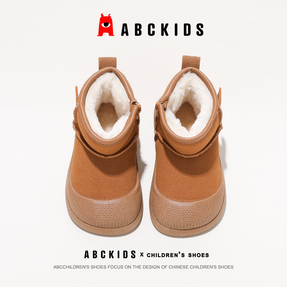 ABCkids儿童雪地靴女童加绒保暖棉鞋男童冬季防滑厚底侧拉链棉靴