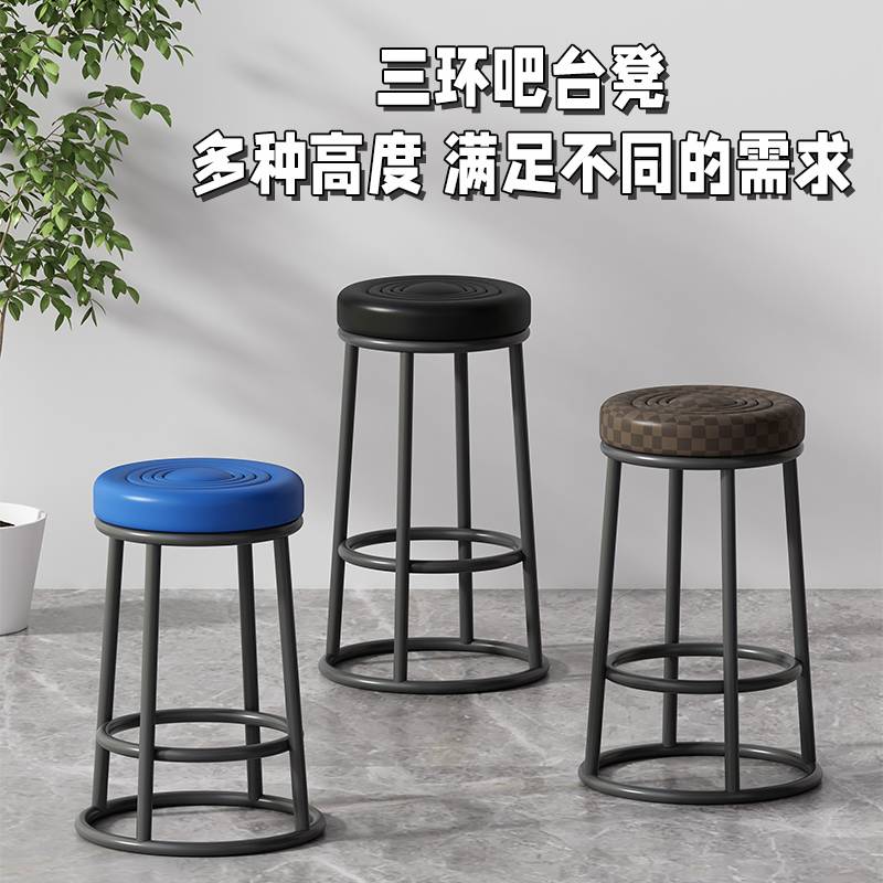 吧台椅轻奢家用高脚凳简约吧椅高椅子商用铁艺酒吧椅前台圆形凳子
