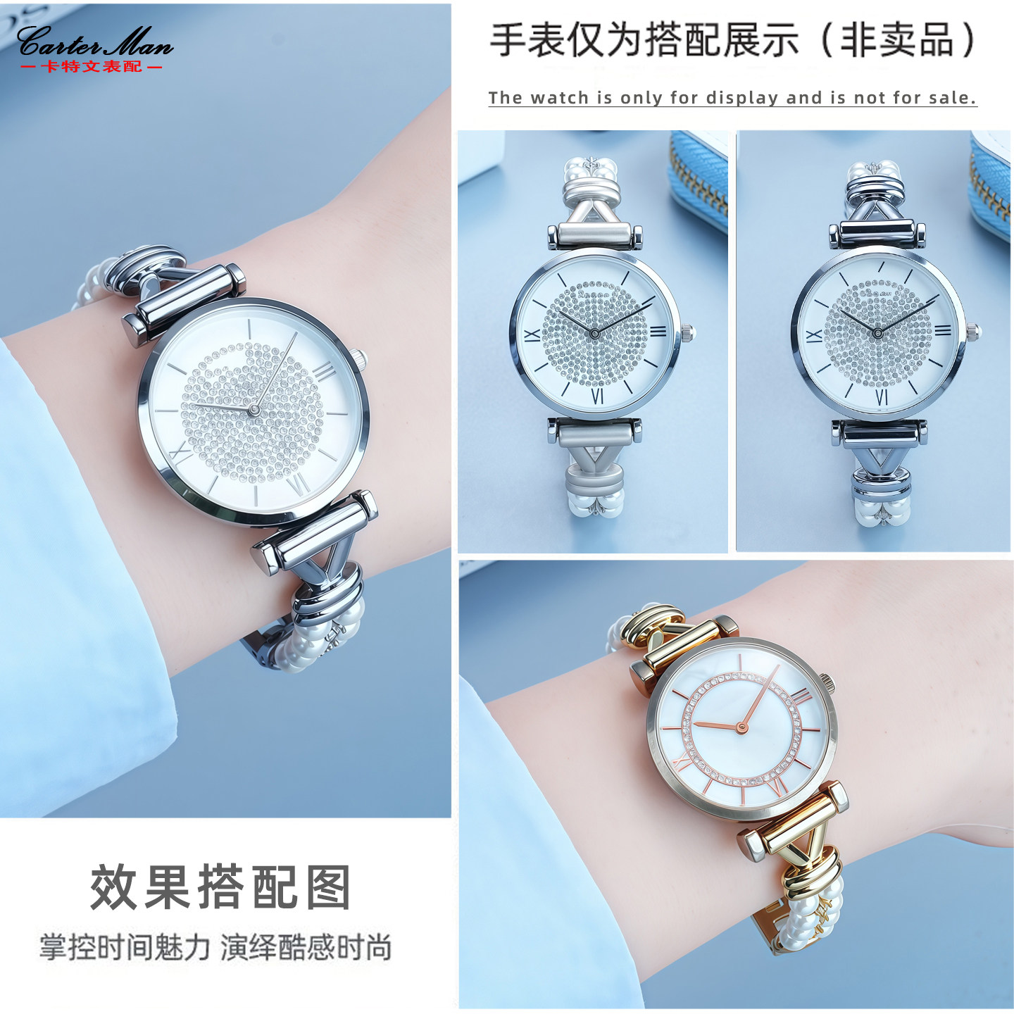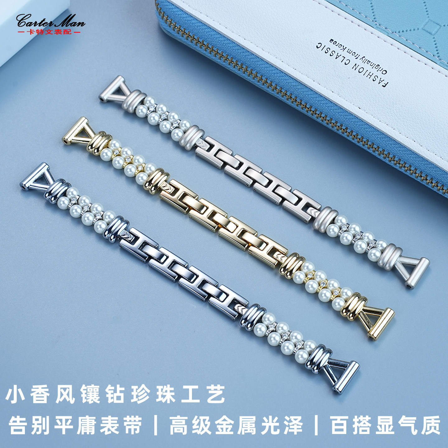 小香风镶钻珍珠表带适配阿玛尼满天星AR1926 11244 1909 1907女款