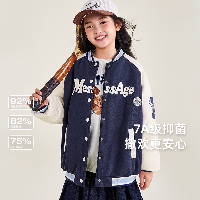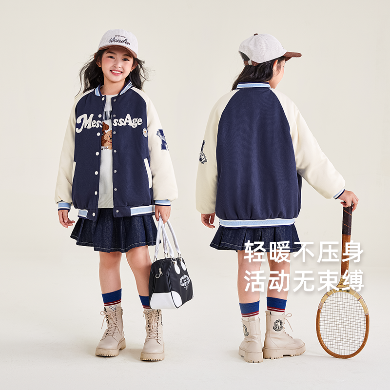 [远红外锁温]女童棒球服大童夹棉运动宝宝撞色冬装潮儿童冬季外套