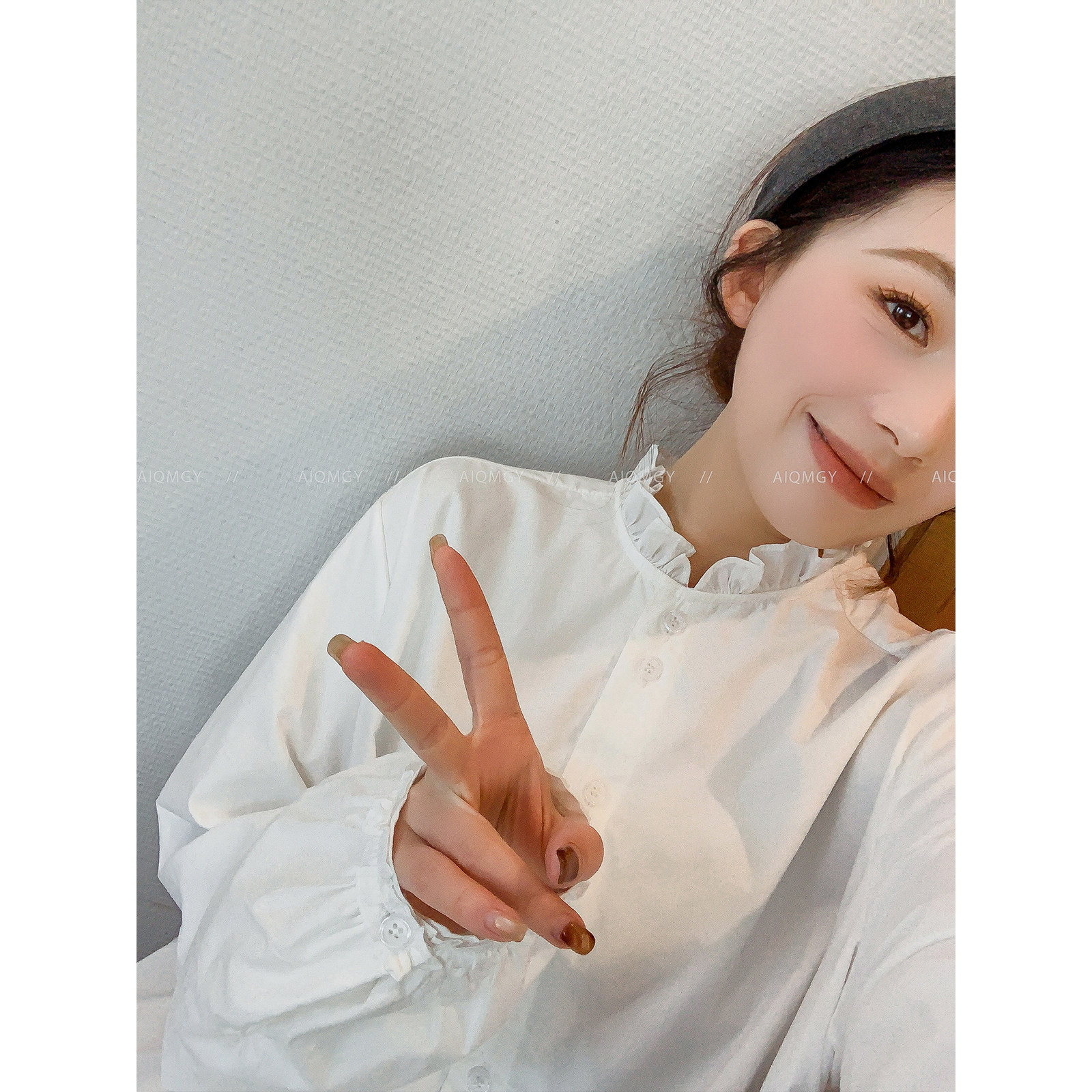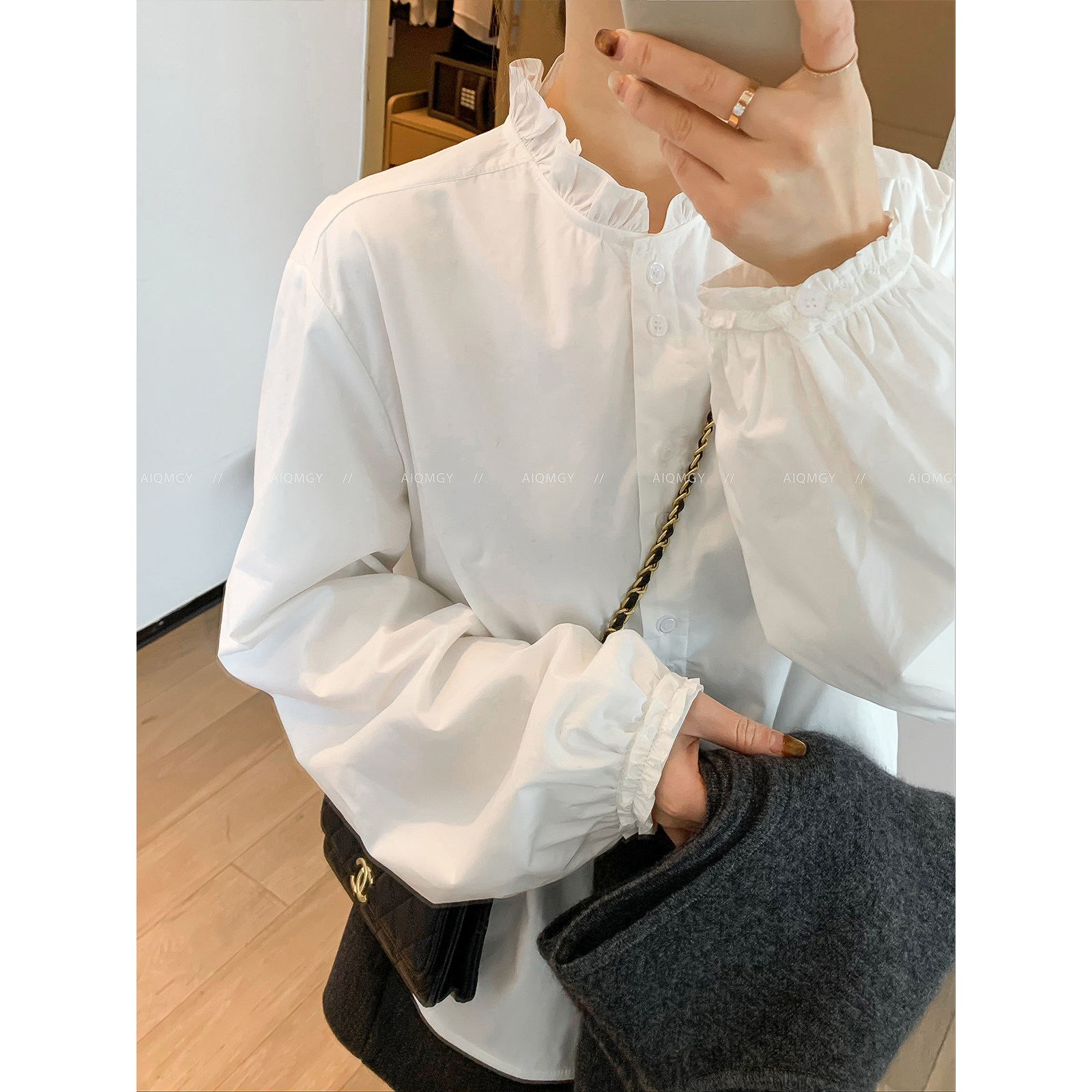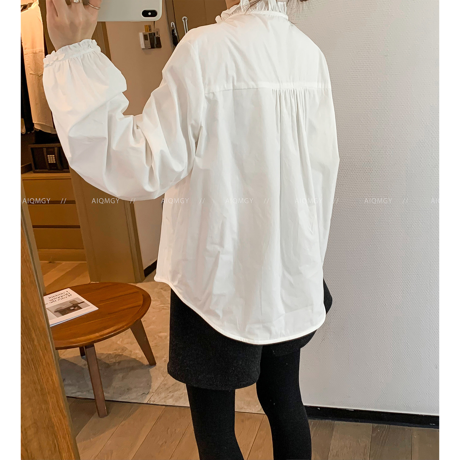 爱情魔鬼鱼 白色长袖花边领衬衫女2025冬季新款通勤加绒打底上衣