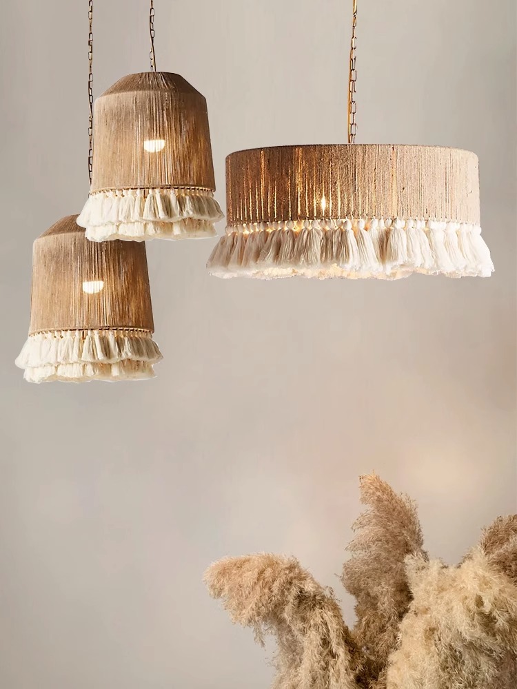 侘寂风复古麻绳吊灯波西米亚流苏