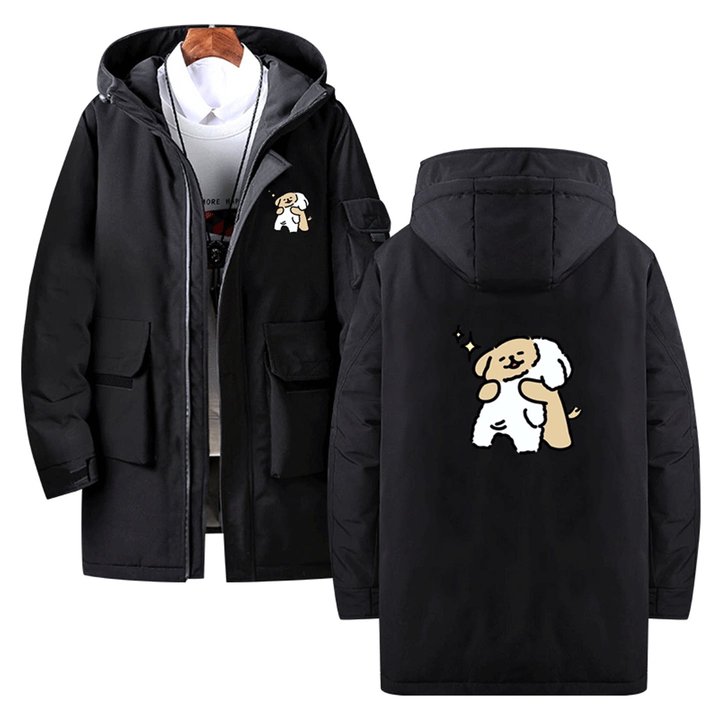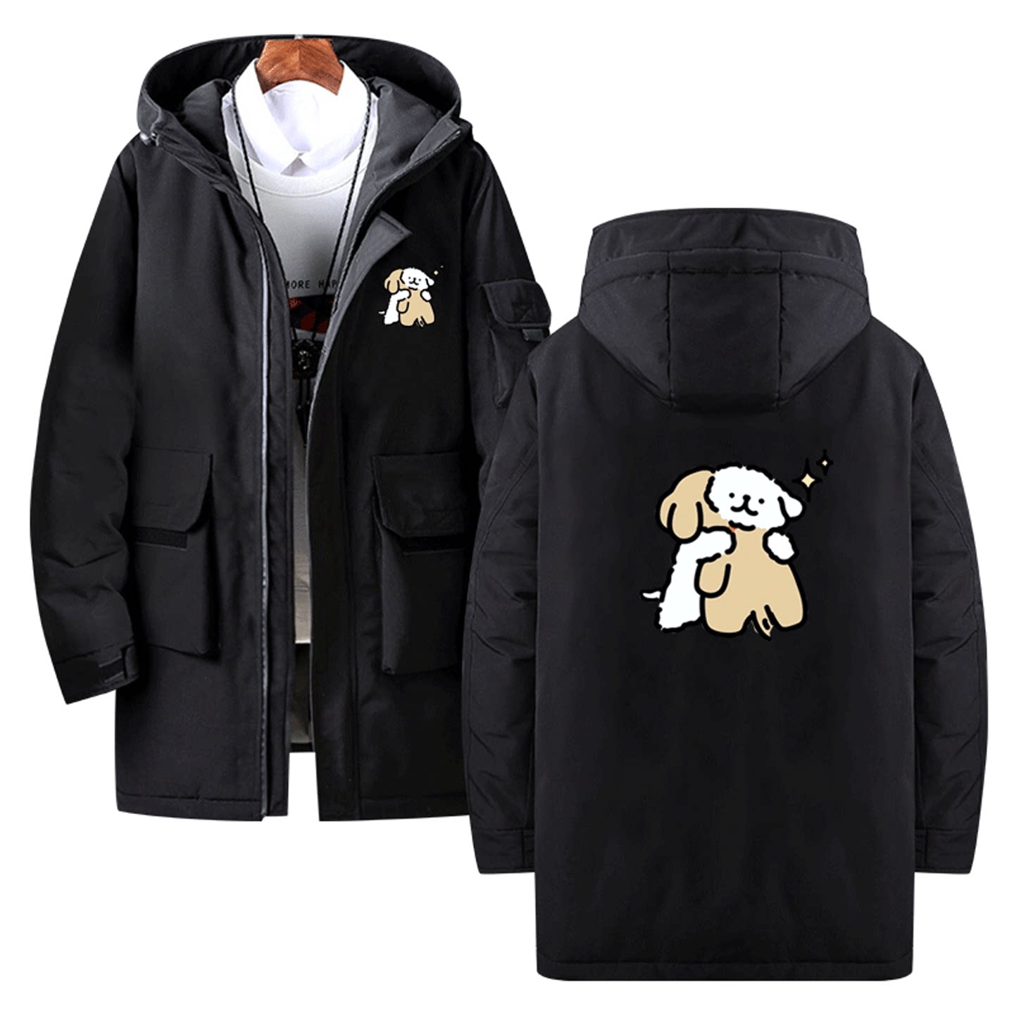 马尔济斯线条小狗联名2025年卡通可爱男女可定制外套中长款羽绒服