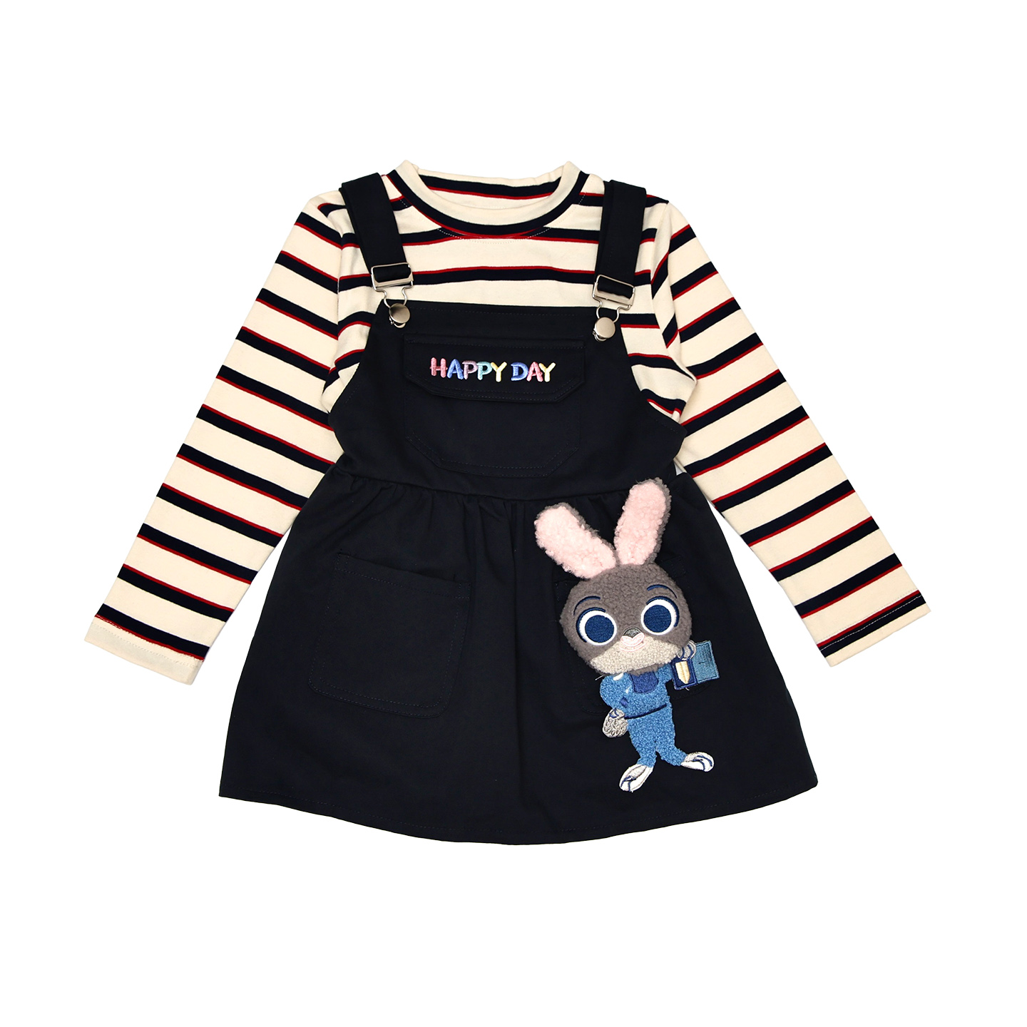 女童背带裙2025新款小女孩卡通条纹套装裙子女宝宝两件套洋气秋装