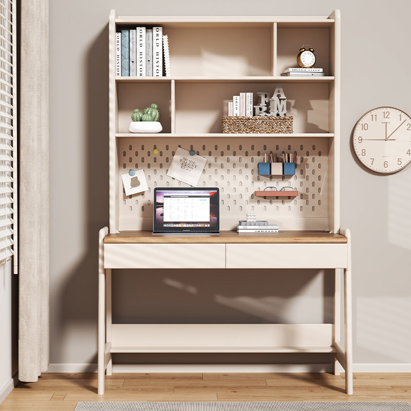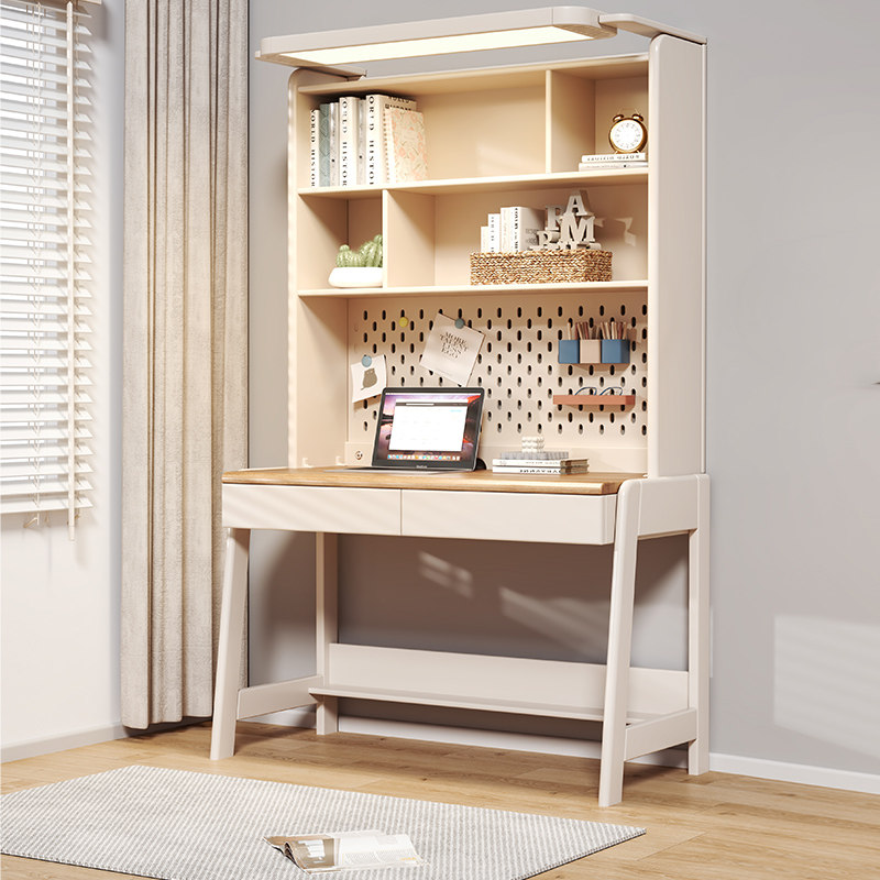 全实木书桌书柜一体书房客厅儿童学习桌简约现代一体家用办公书桌