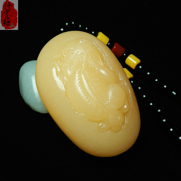 天然玉石原石手把件米黄玉貔貅玉把件男礼品黄玉裸石玉把玩件玉器