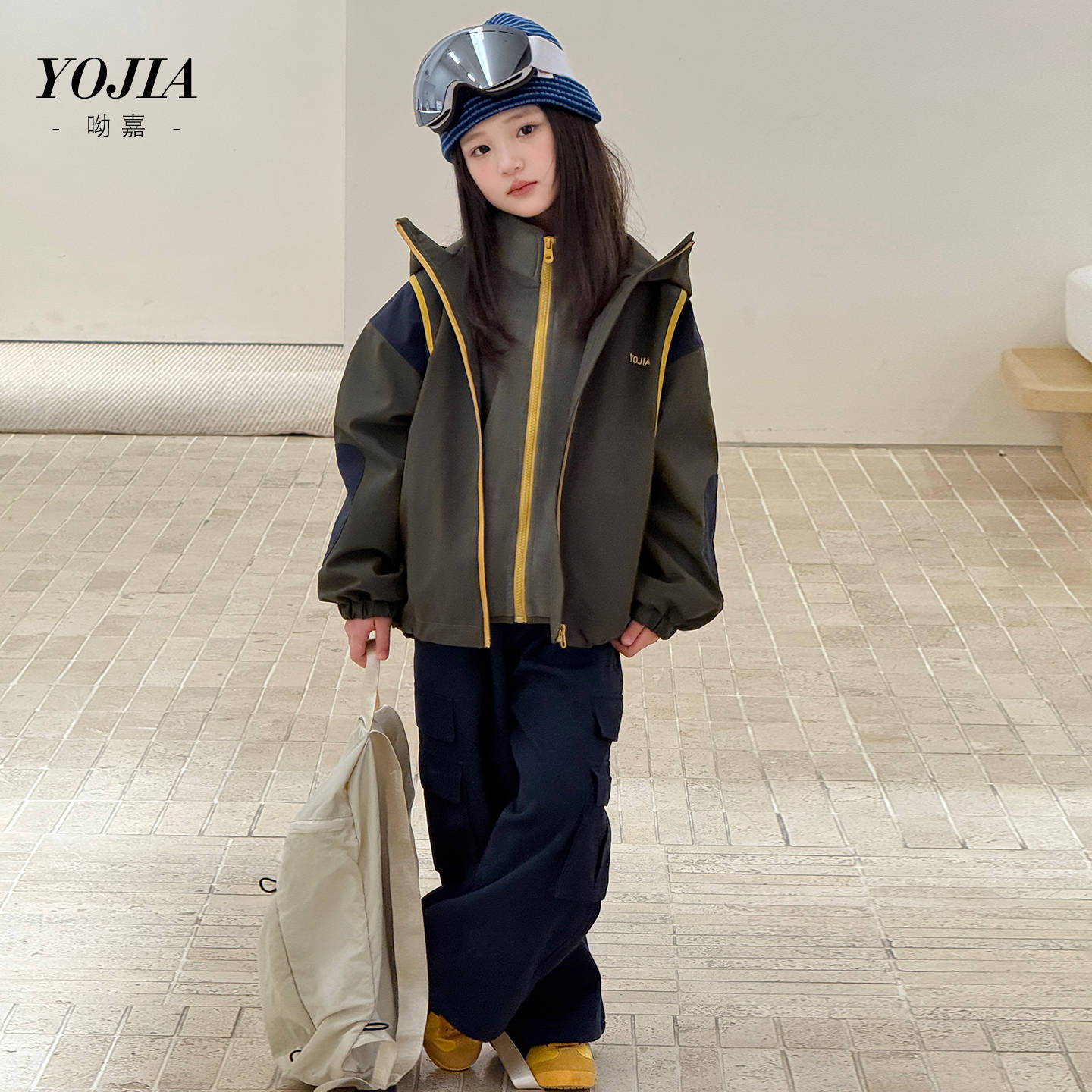 YOJIA女童冲锋衣冬装2025新款洋气保暖小女孩上衣三合一儿童外套