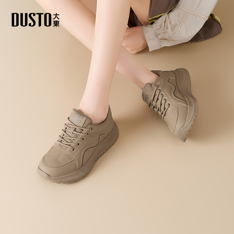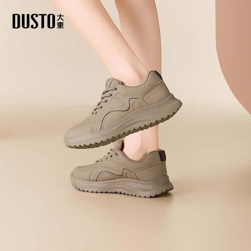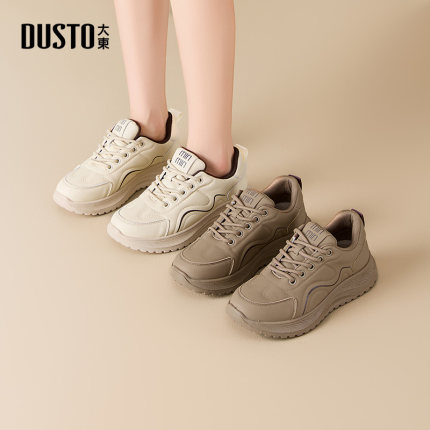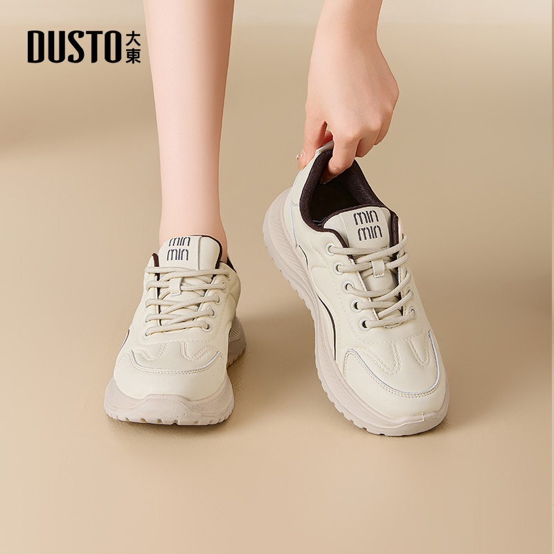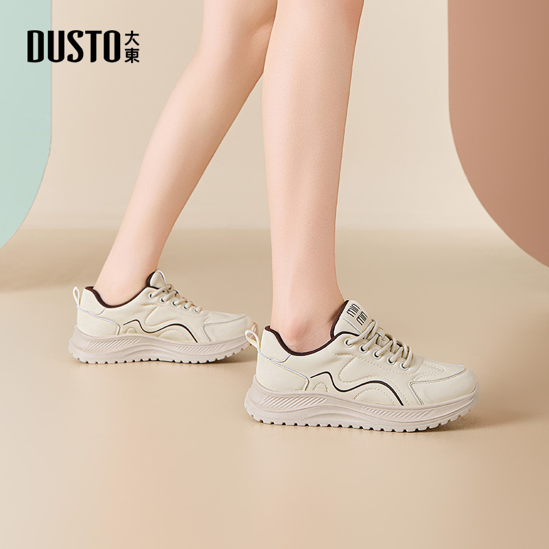 大东休闲鞋女鞋2025秋季新款时尚简约平底运动跑鞋单鞋厚底小白鞋