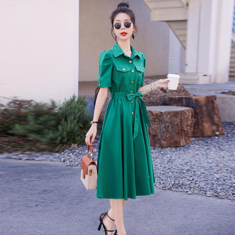 设计衬衫ZCAI250连衣裙女夏季新瘦款小个子气质收腰式显法别致裙
