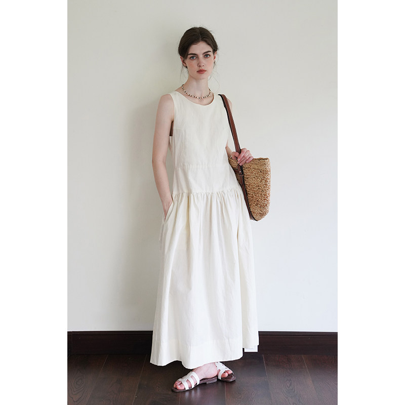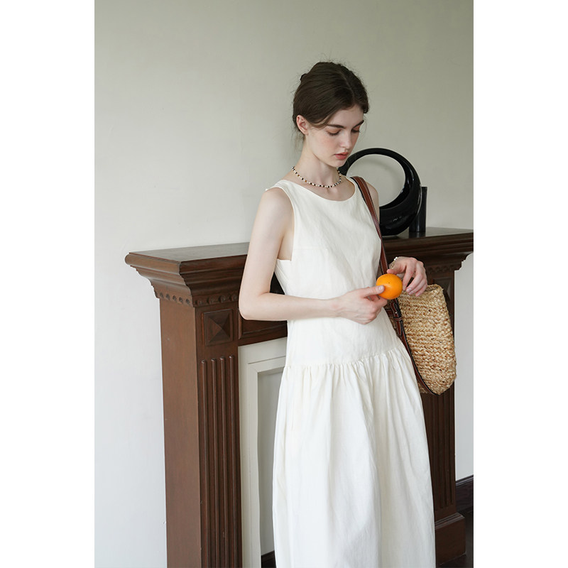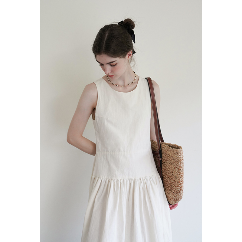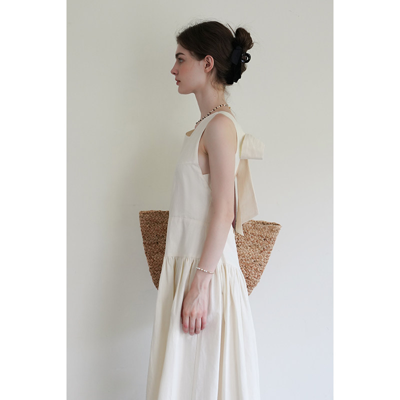 miorastudio法式复古亚麻长裙无袖露背连衣裙女小众蝴蝶结背心裙