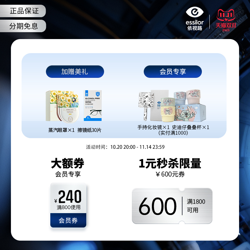 依视路膜致爱赞全晰近视防蓝光镜片现片赠夏蒙施洛华