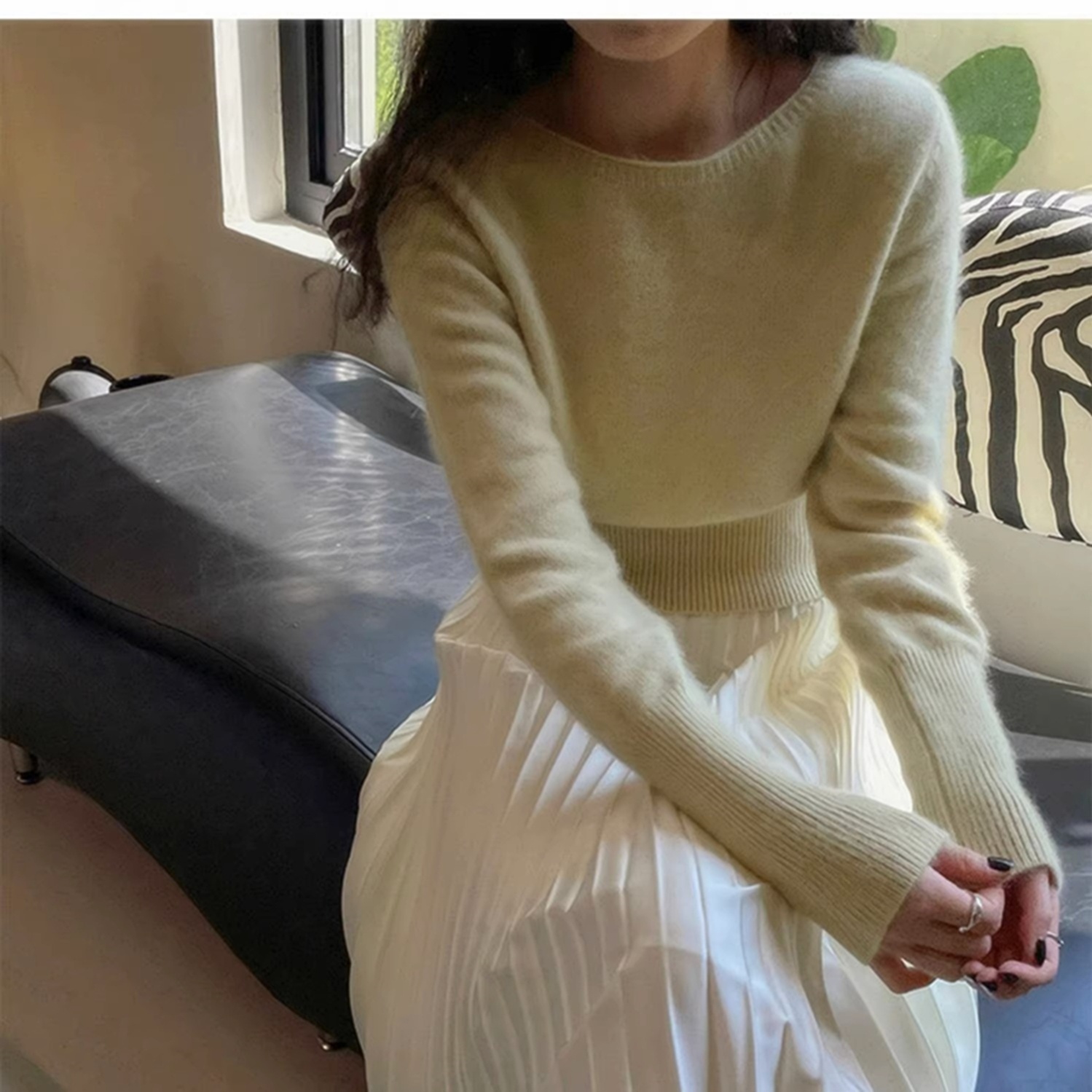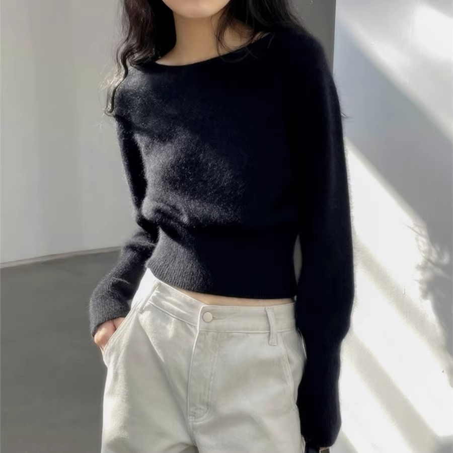 气质高腰短款羊绒针织衫女秋冬修身显瘦小个子毛衣圆领羊毛打底衫