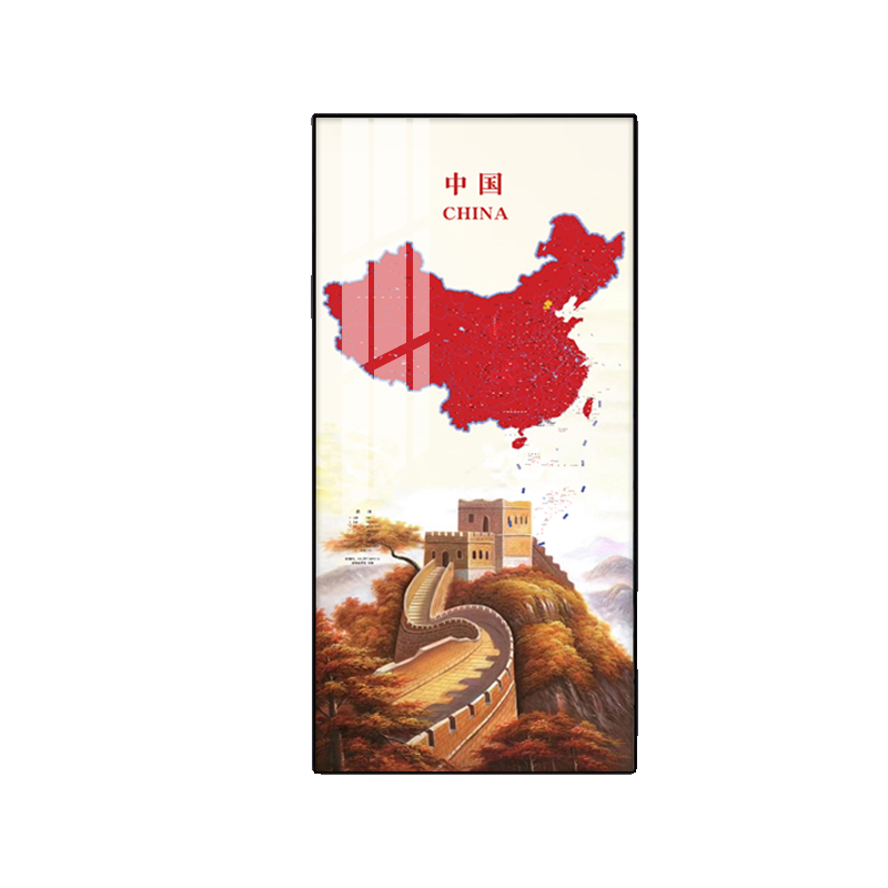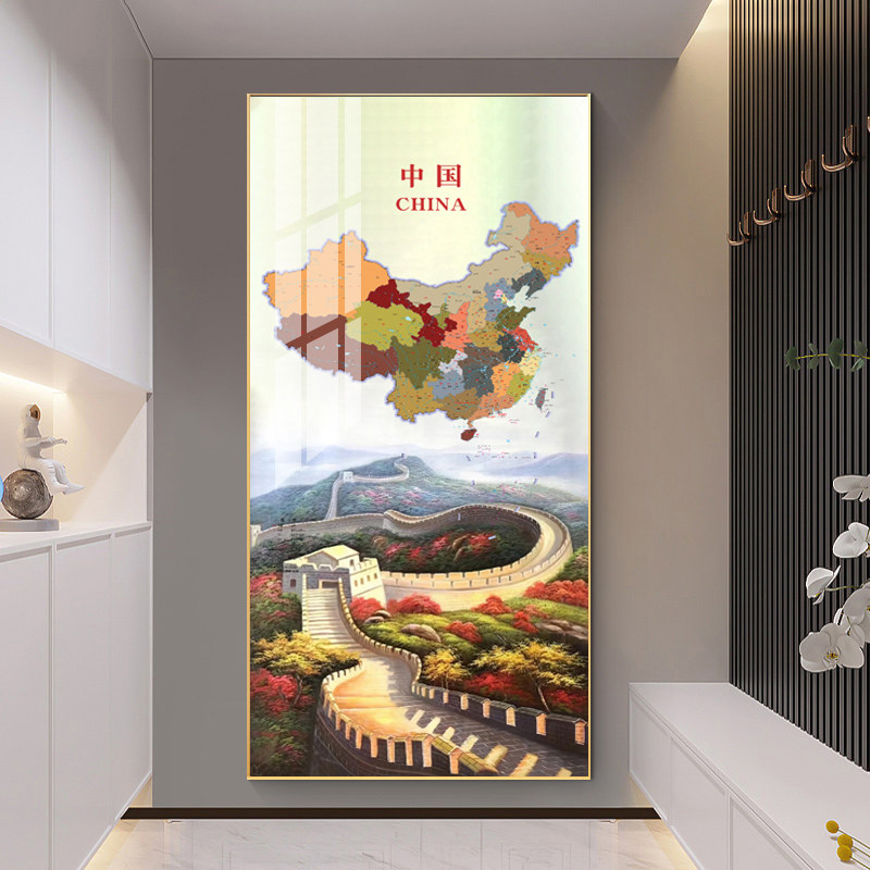 轻奢玄关装饰画中国红地图挂画新中式万里长城办公室山水画
