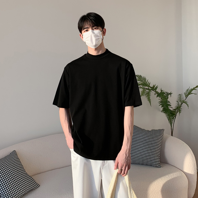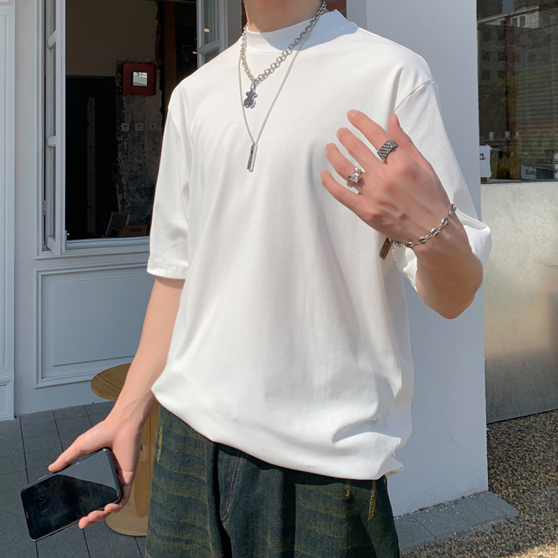 白口阳 日常简约百搭纯色t恤男高领短袖精致韩版潮流ins五分袖