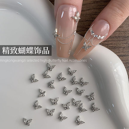 美甲镶钻精致蝴蝶饰品2025新款超闪轻奢迷你银色立体指甲diy配饰