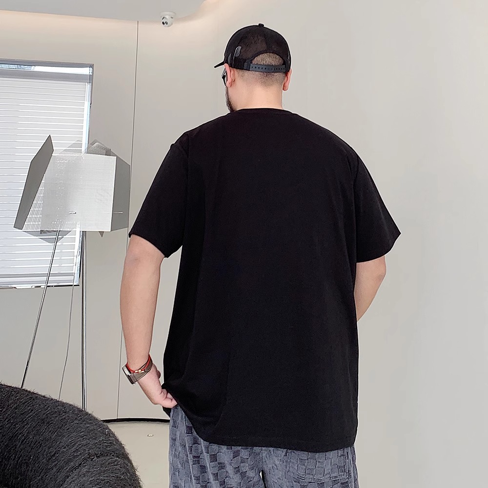 夏季胖子加肥加大短袖T恤男潮牌肥佬缉明线装饰宽松大码纯棉半袖