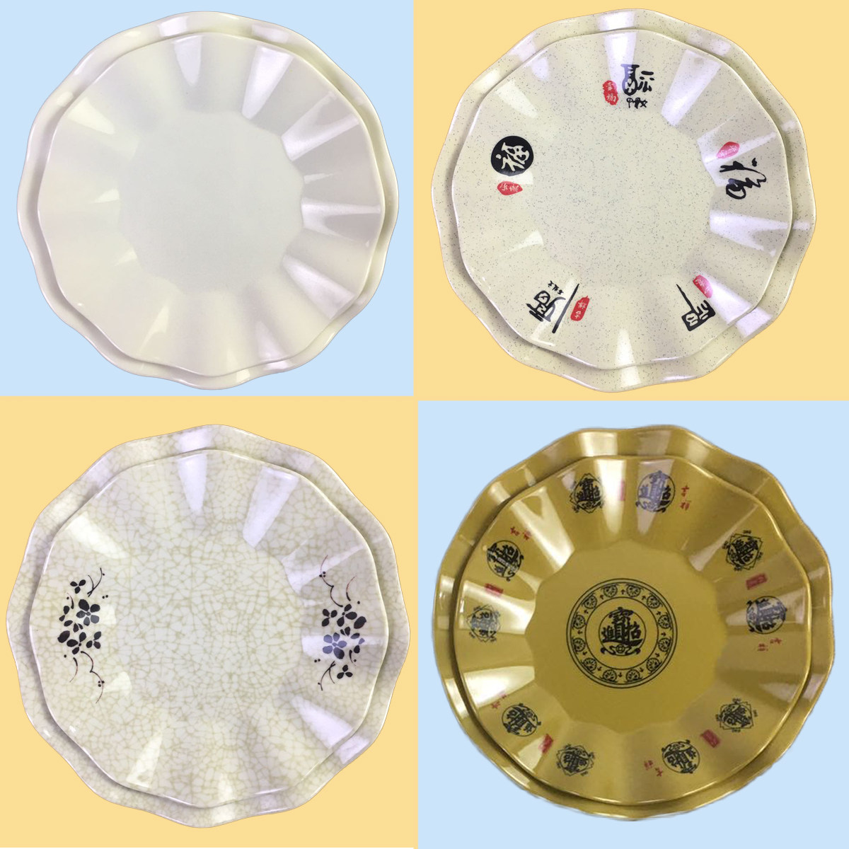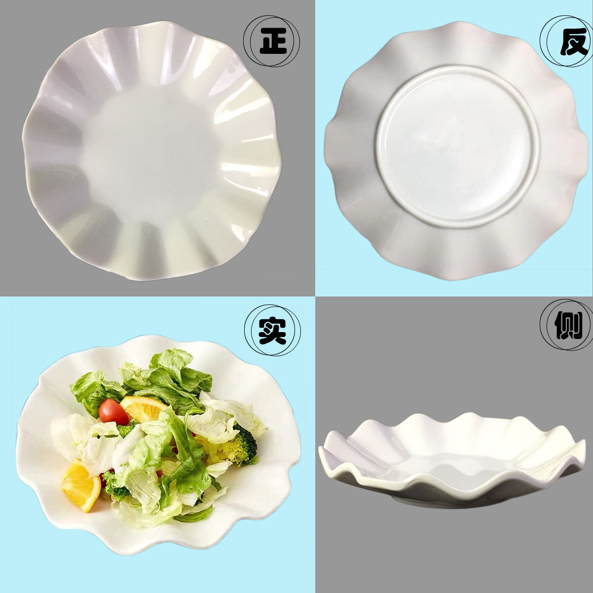 白色密胺干果盘塑料圆盘KTV小吃碟饭店盖饭炒菜盘子仿瓷凉菜盘子