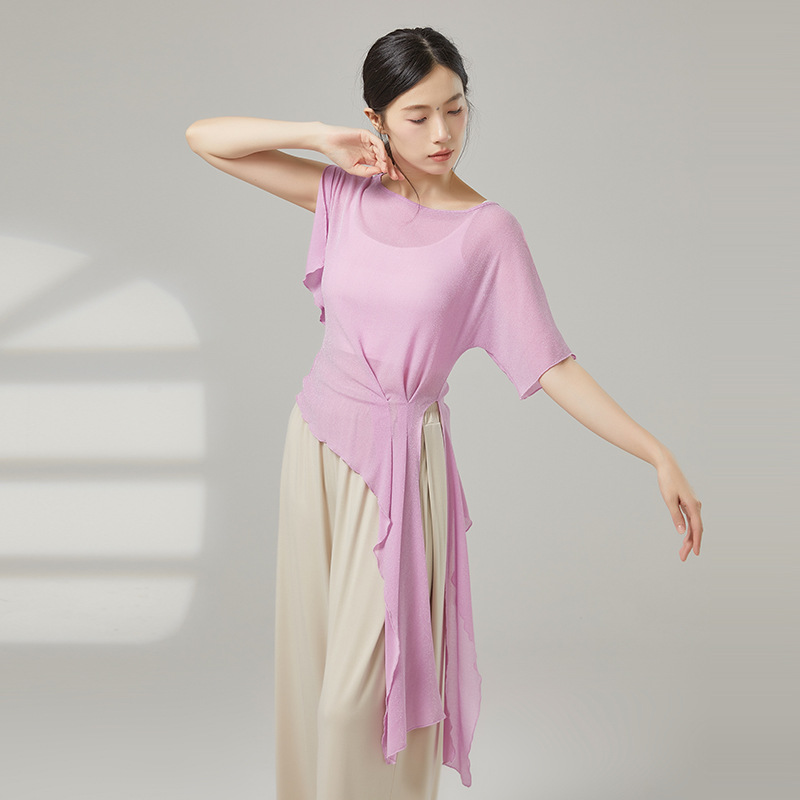 侧边打结飘逸古典舞纱衣夏形体训练服装女现代舞舞蹈服女练功服
