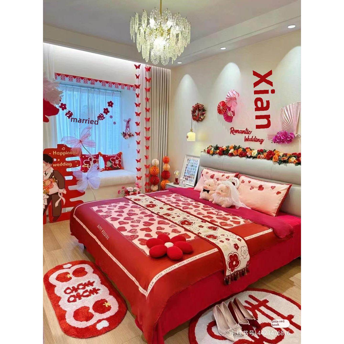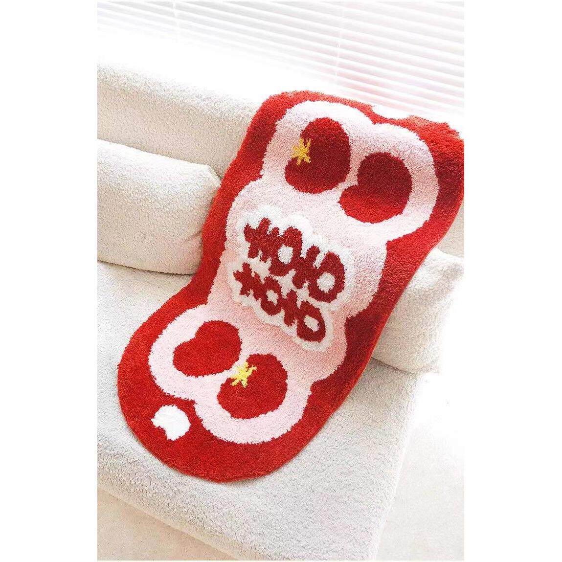 家用喜庆植绒地毯入户门吸水防滑脚垫卫生间浴室柔软植绒地毯